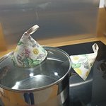 Avec une jolie forme de chapeau avec une boucle sur le dessus pour y passer un doigt pour l'avoir bien En main