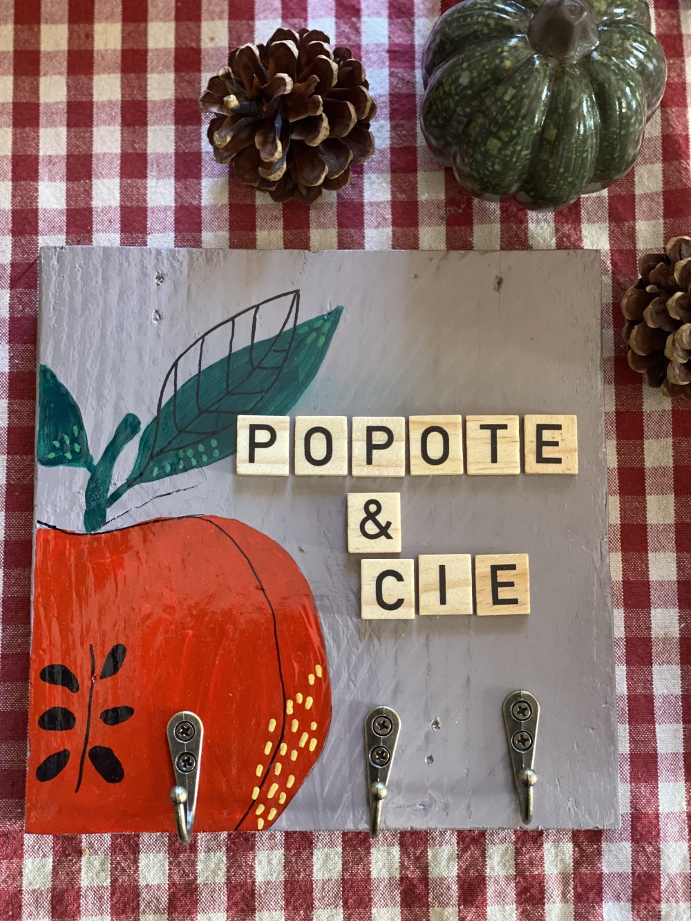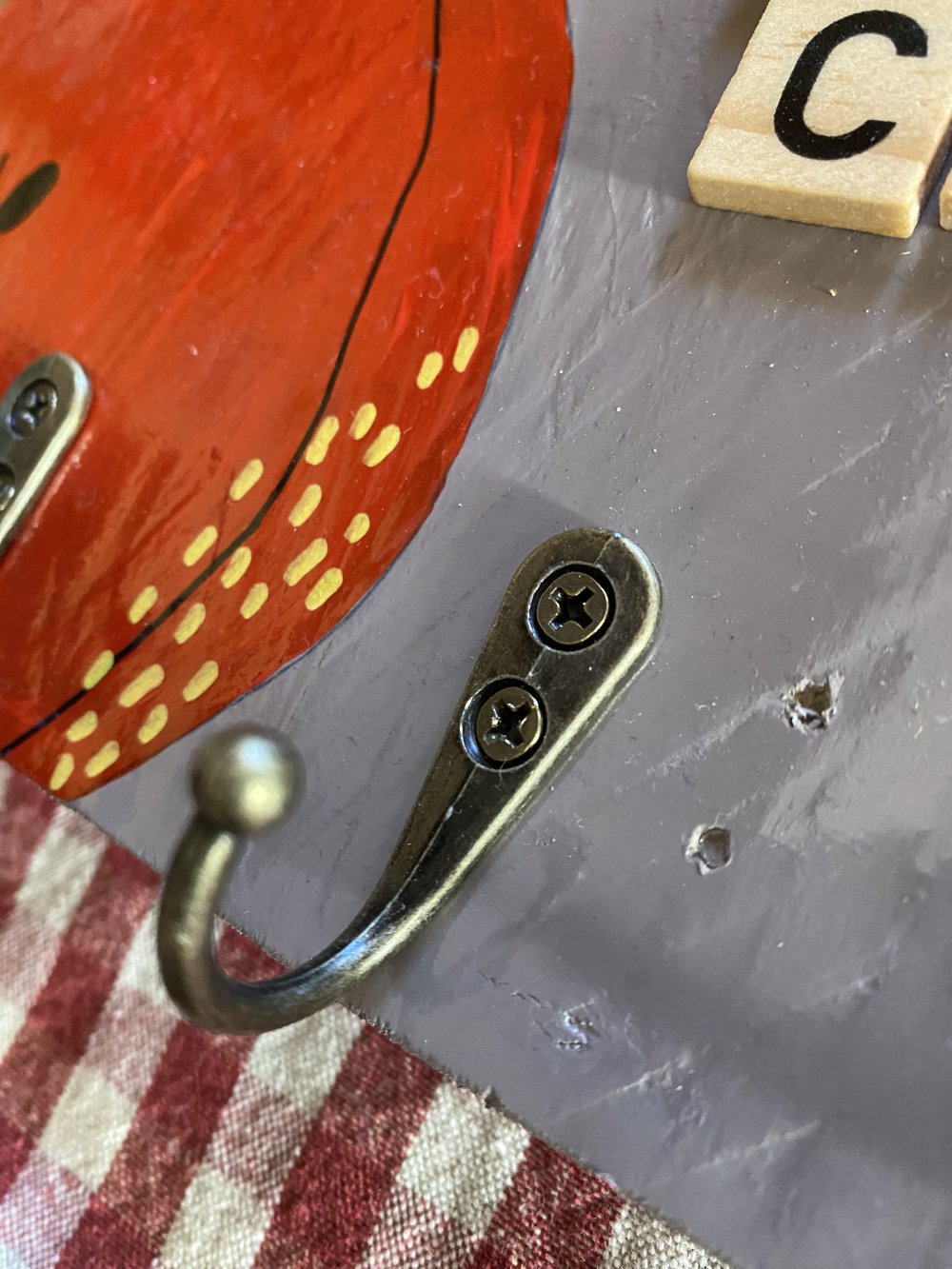 Une simple planche en bois, peinte et vernie, accueillera vos torchons à la cuisine, vos clés ou petits sacs…