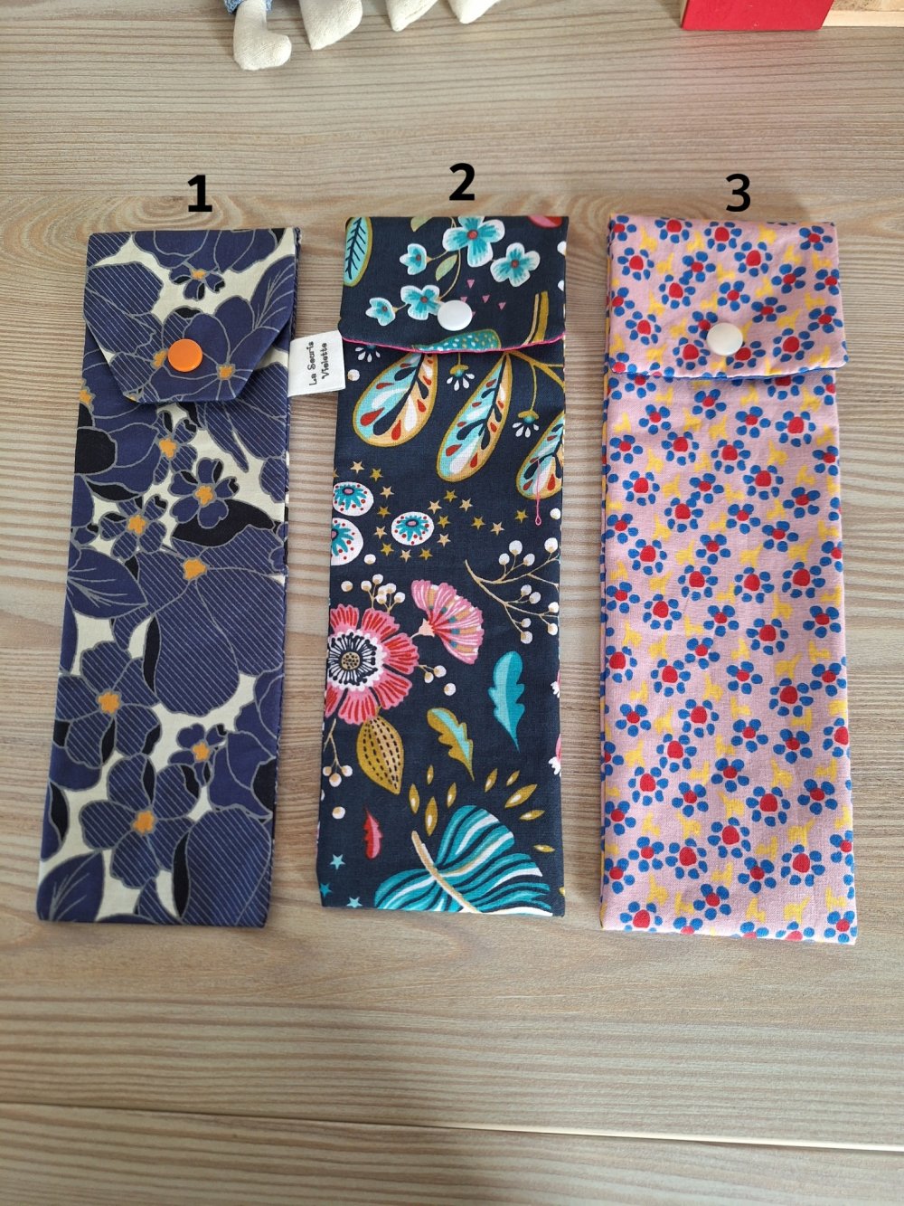 La pochette est entièrement réalisée à la main, en coton imprimé sur l'endroit et en coton enduit à l'intérieur.