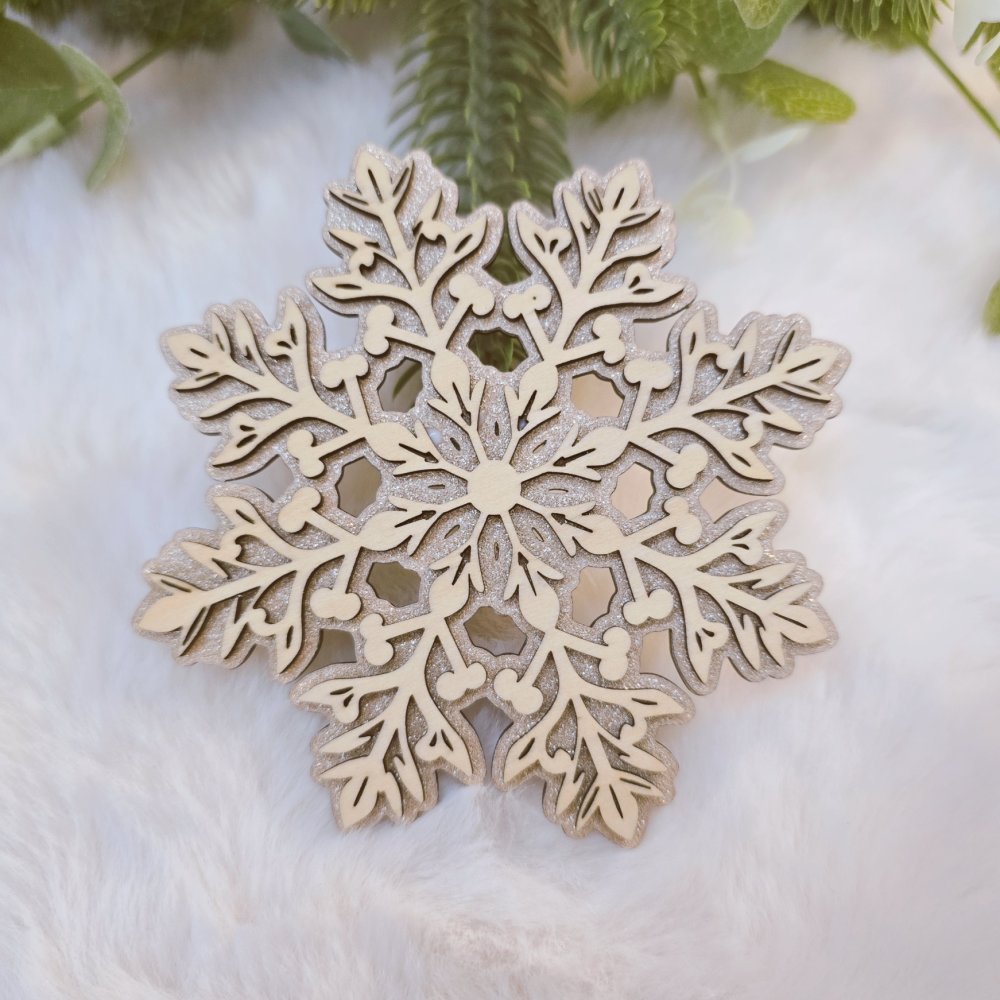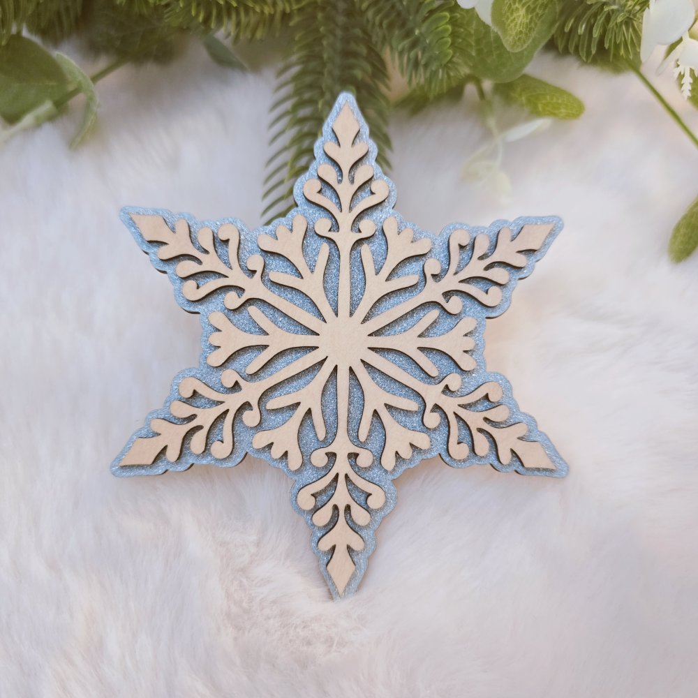 Chaque détail du flocon a été travaillé avec soin pour capturer la lumière et créer de délicats reflets pailletés ✨