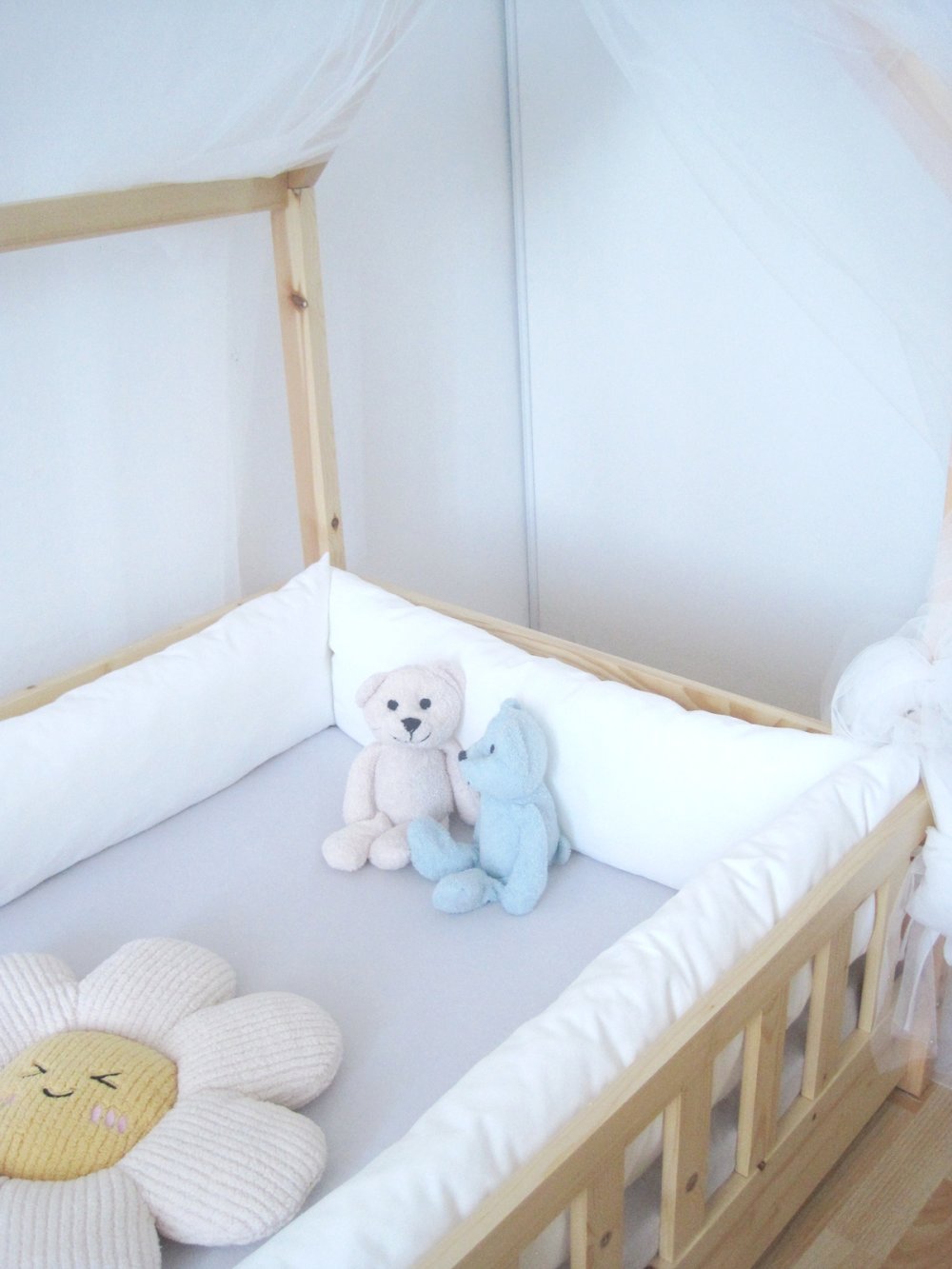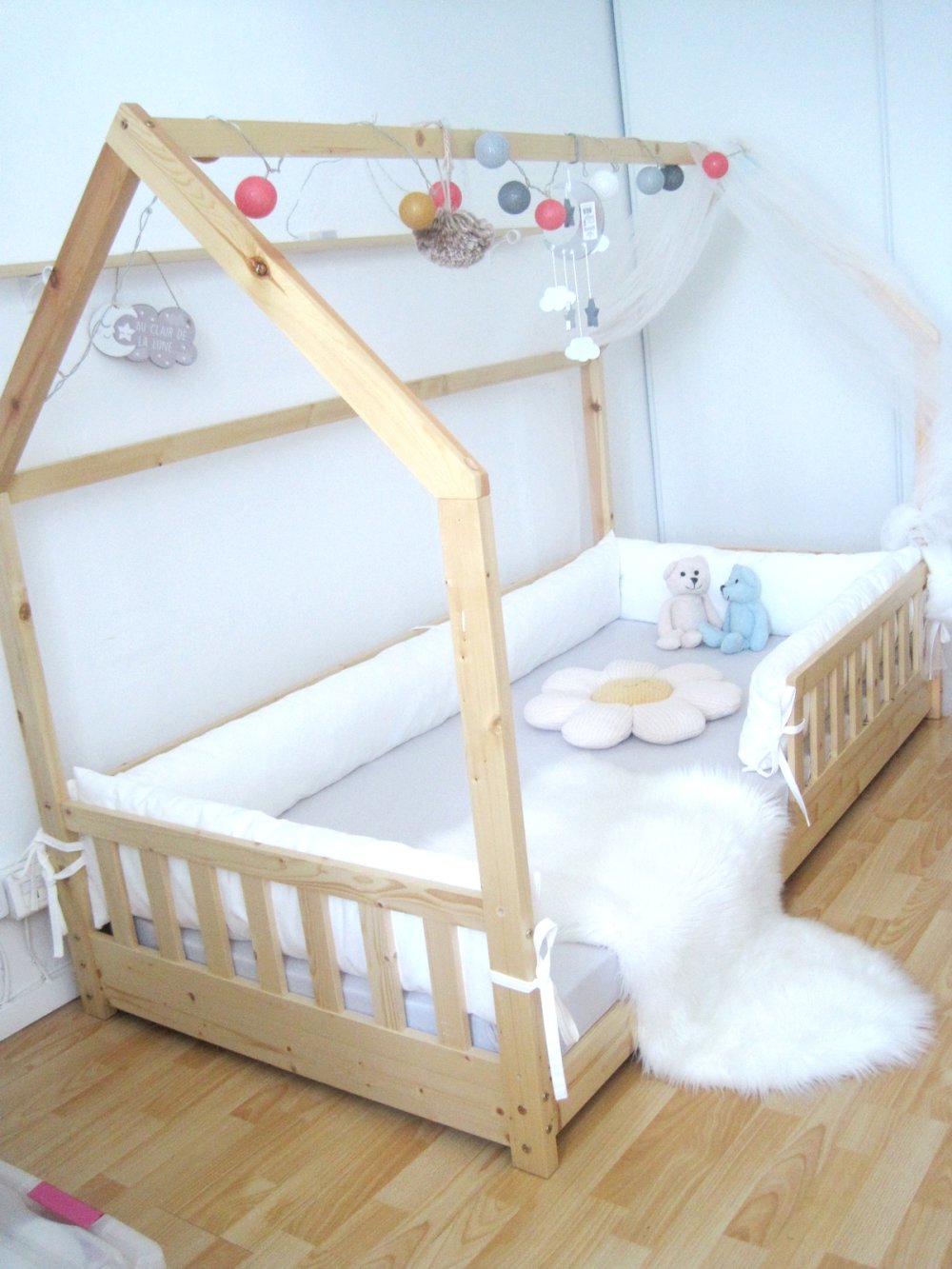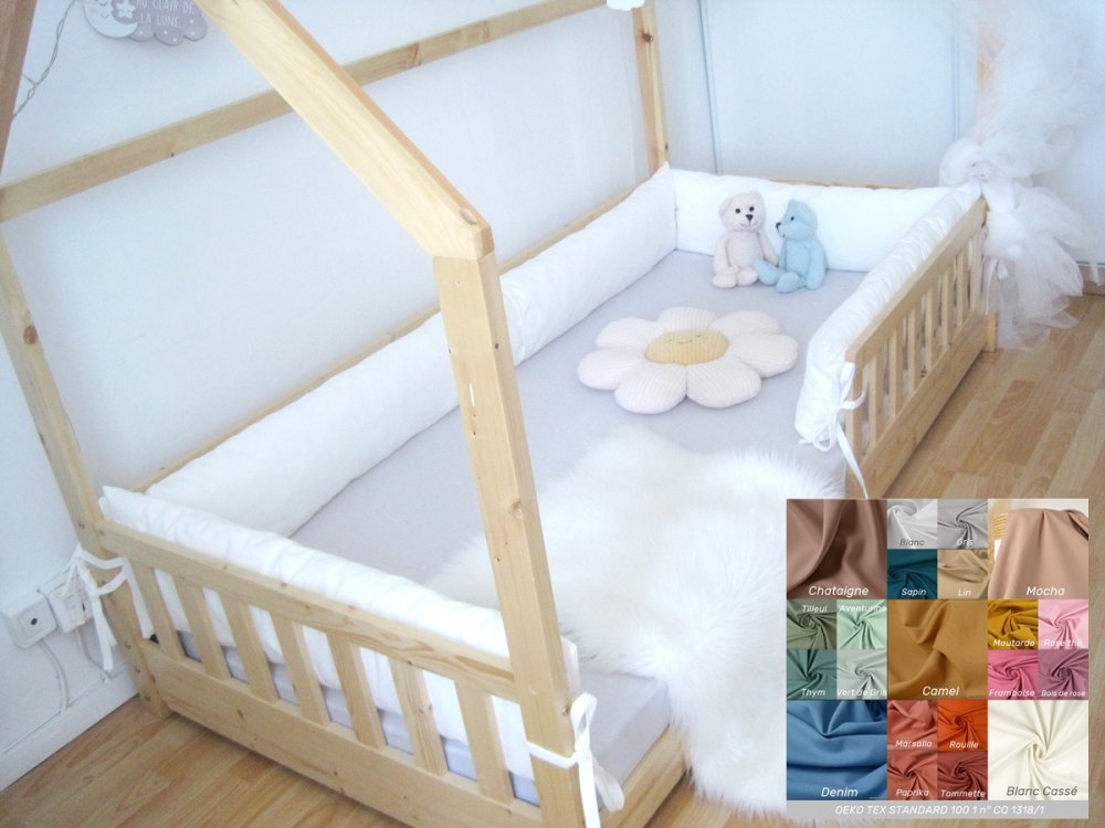 Contour de lit. Traversin plat pour lit cabane, tipi ou Montessori muni de barrières ou lit classique à barreaux.