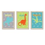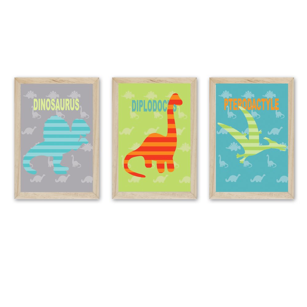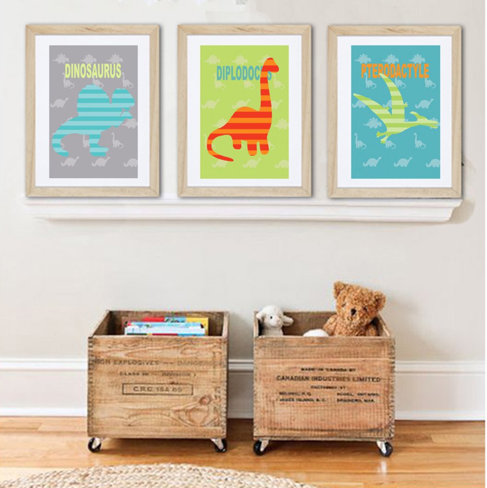3 affiches colorées de dinosaures pour décoration de chambre de garçon