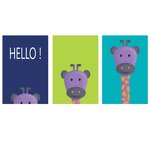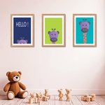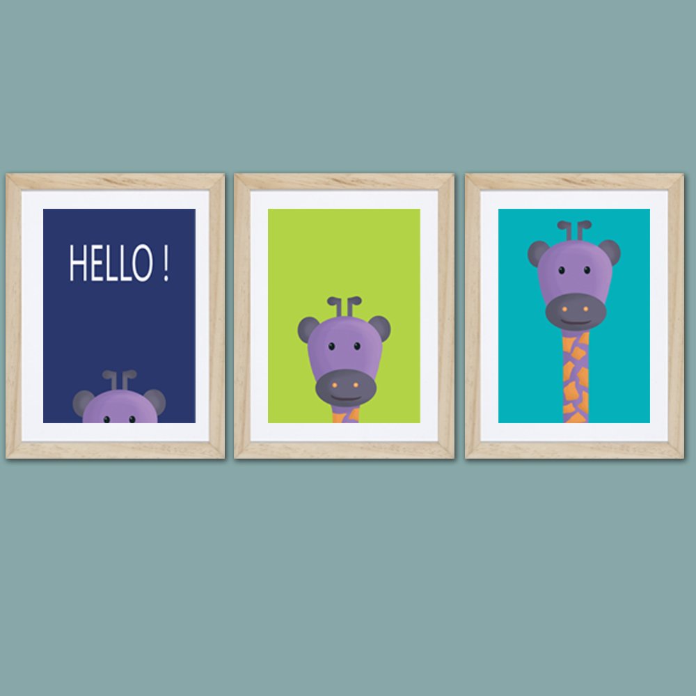 3 affiches avec girafe et le mot "hello" pour apporter de la couleur à la décoration d'une chambre d'enfant!