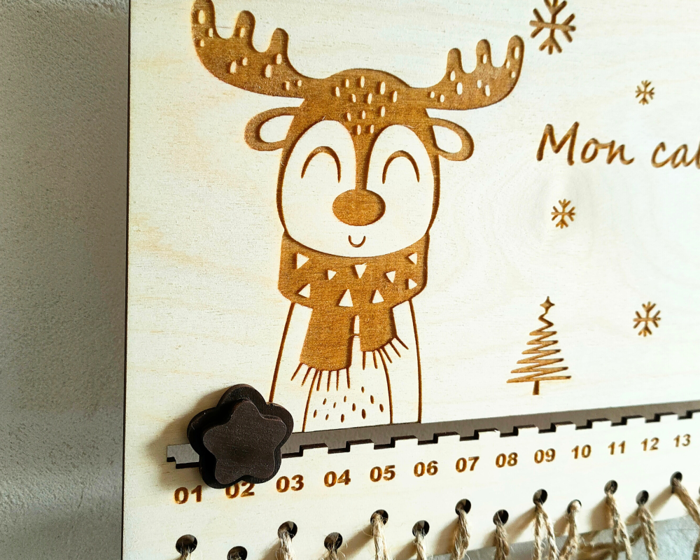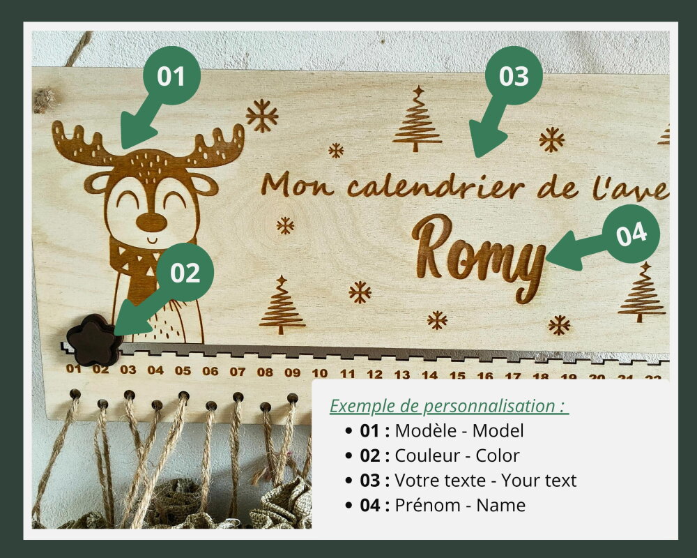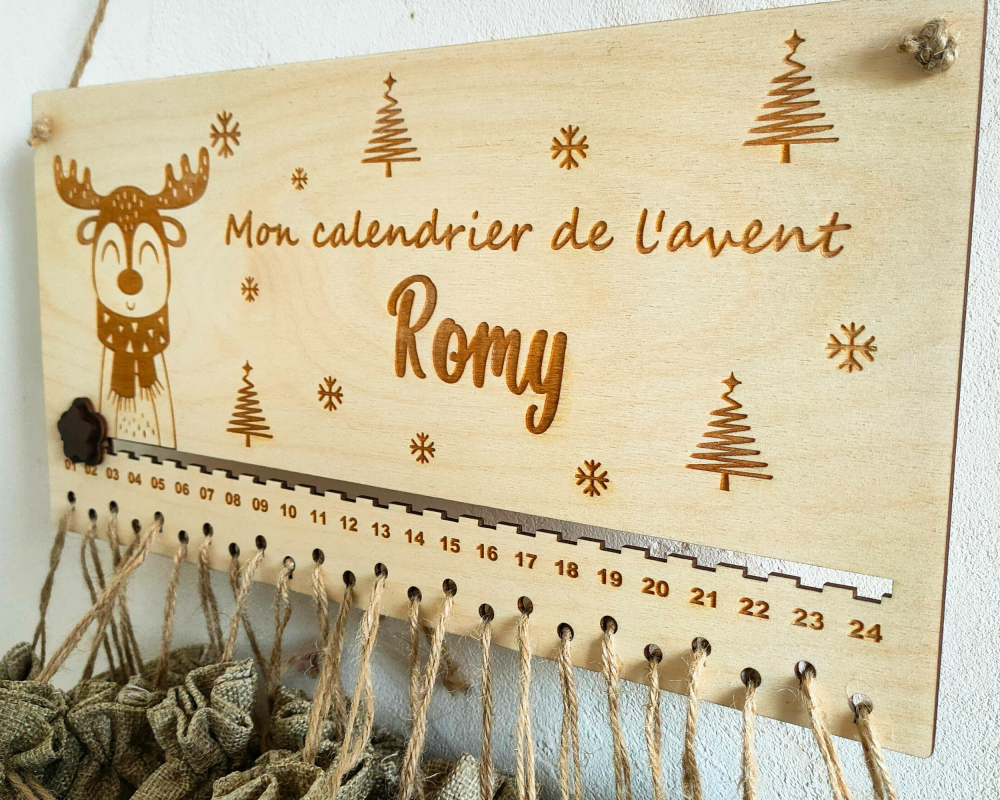 Offrez à votre famille un calendrier de l’Avent personnalisé en bois, gravé au prénom de votre enfant et décoré selon vos envies.