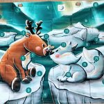 - Devant en velours ras, avec un joli motif de renne et renard blanc sur la banquise.