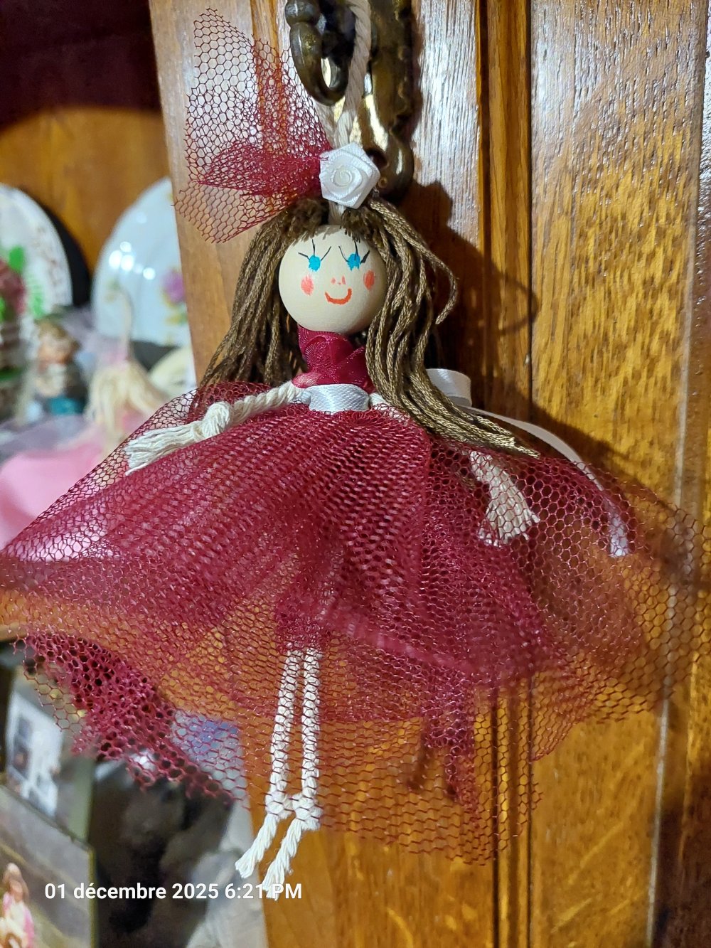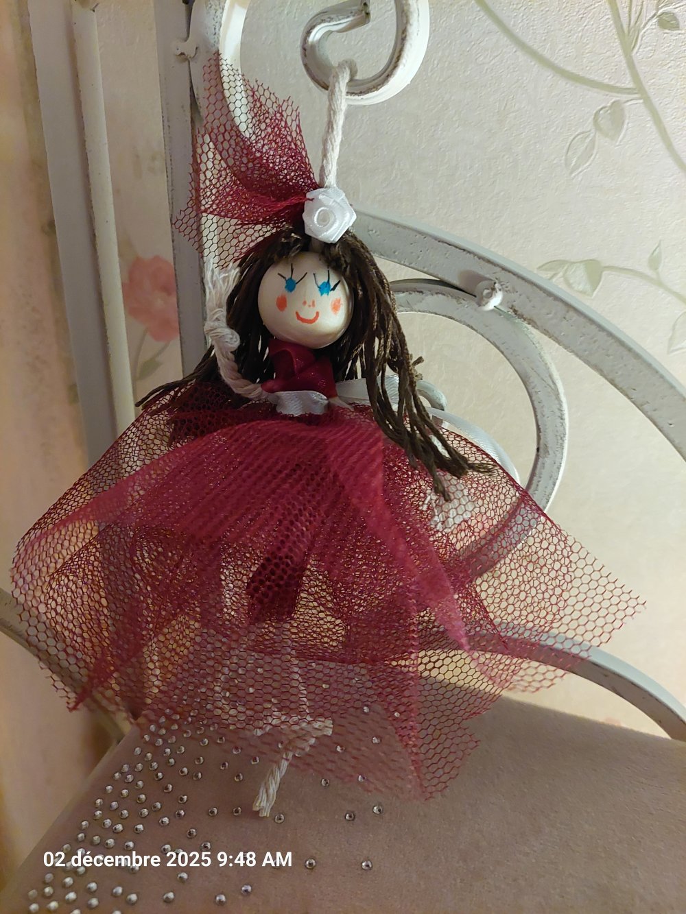 Eléanor attend une famille pour Noël, cette jolie danseuse étoile fait de jolis entrechats et aimerait un sapin ou un endroit où se poser...elle est réalisée à la main avec du fil macramé du tulle et beaucoup d'amour...