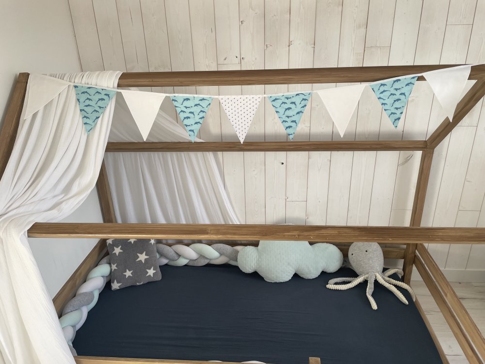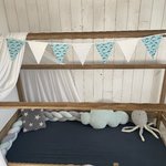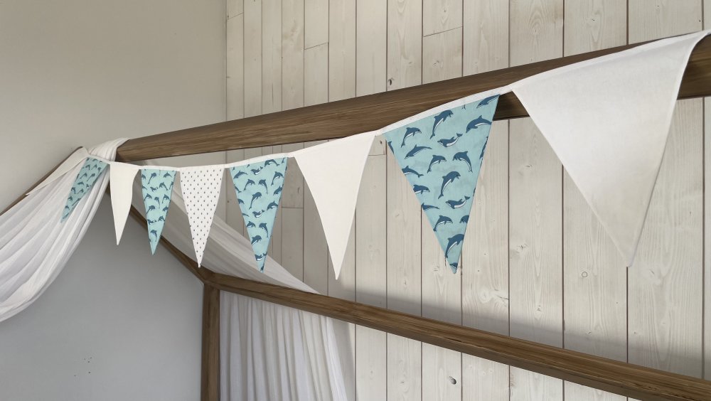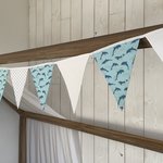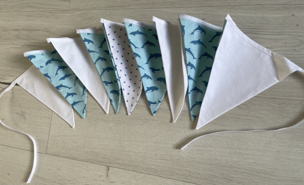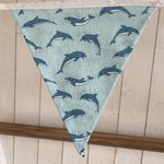 Guirlande de 9 fanions en coton. Thème "dauphins".