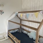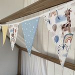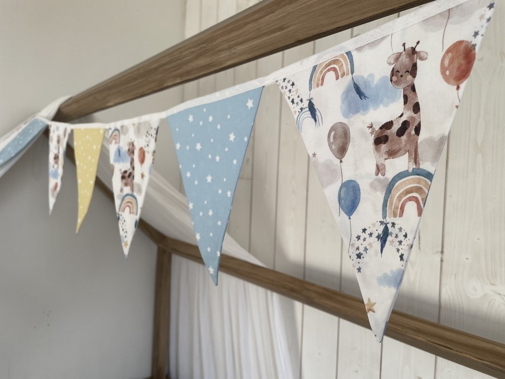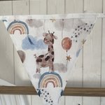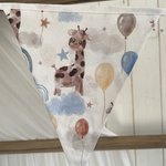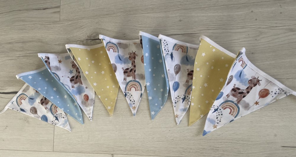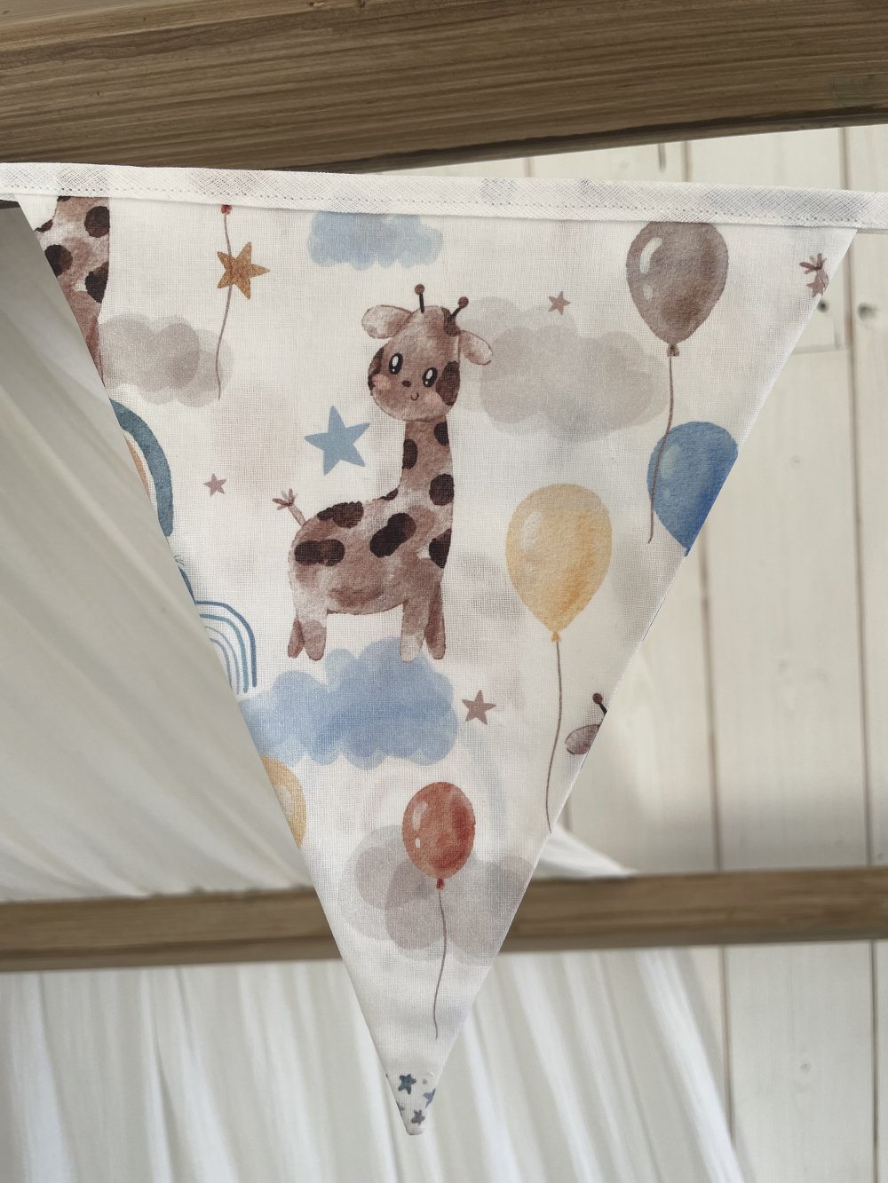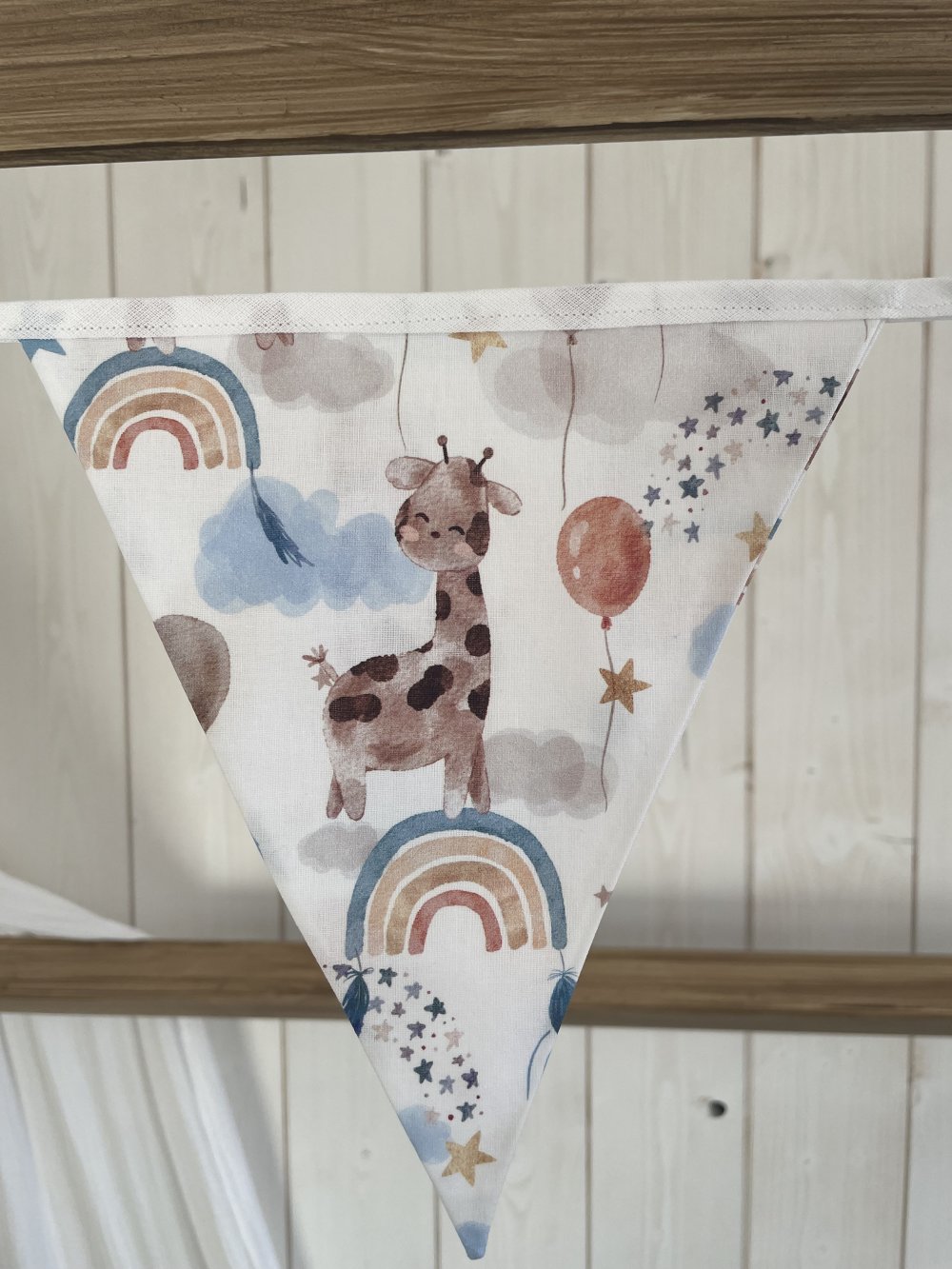 Guirlande de 9 fanions en coton. Thème "girafe".