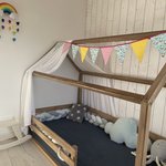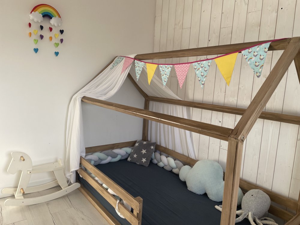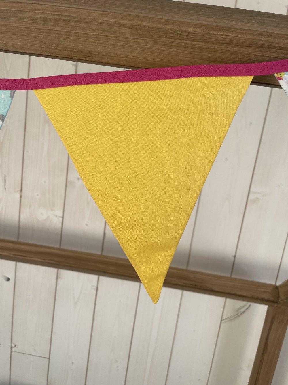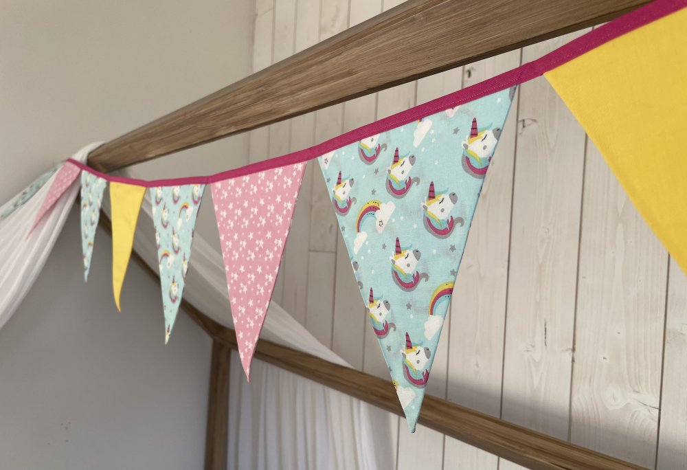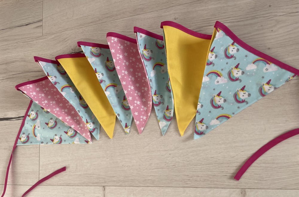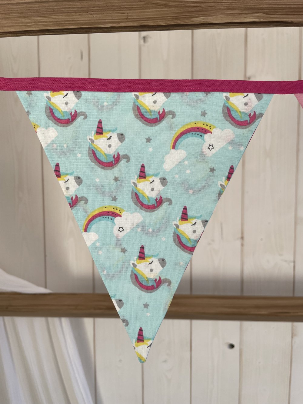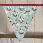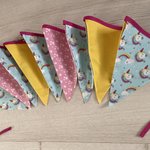 Guirlande de 9 fanions en coton. Thème "licornes".