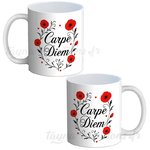 Mug en céramique blanche de haute qualité est décoré d’un joli motif de coquelicot rouge et de l’inscription Carpe Diem, symbole de sérénité