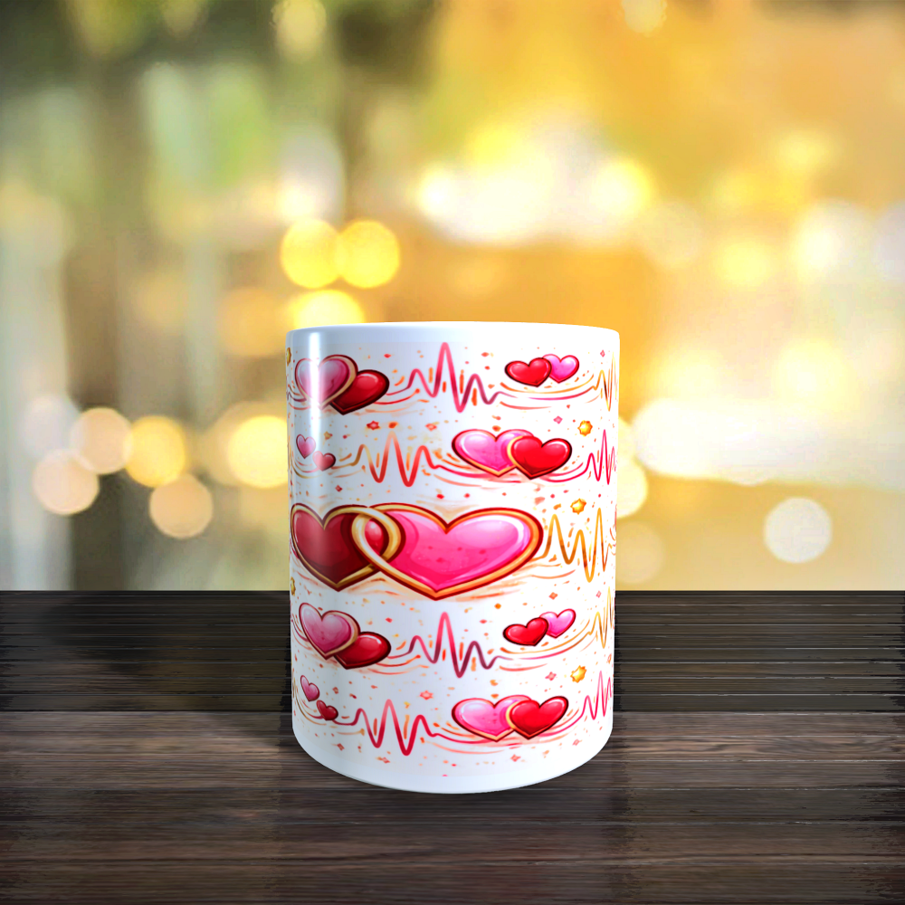 Mug en céramique 11 oz Coeurs entrelacés Cadeau couple, Saint-Valentin, Anniversaire...