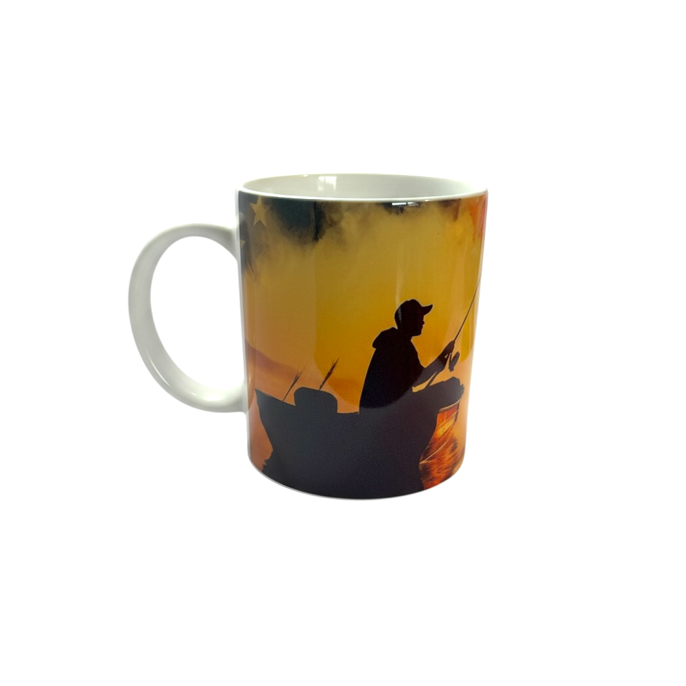 Mug en céramique sur le thème de la pêche-coucher de soleil