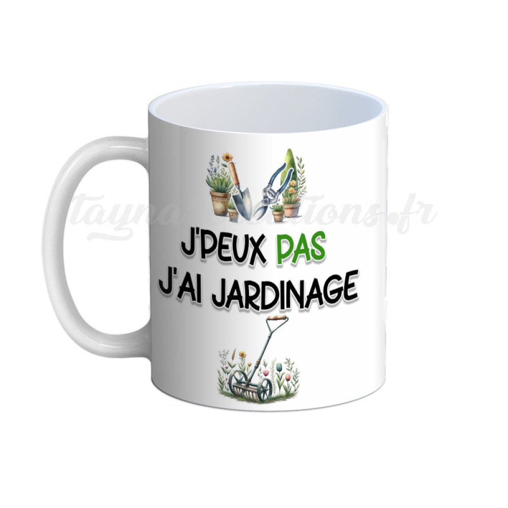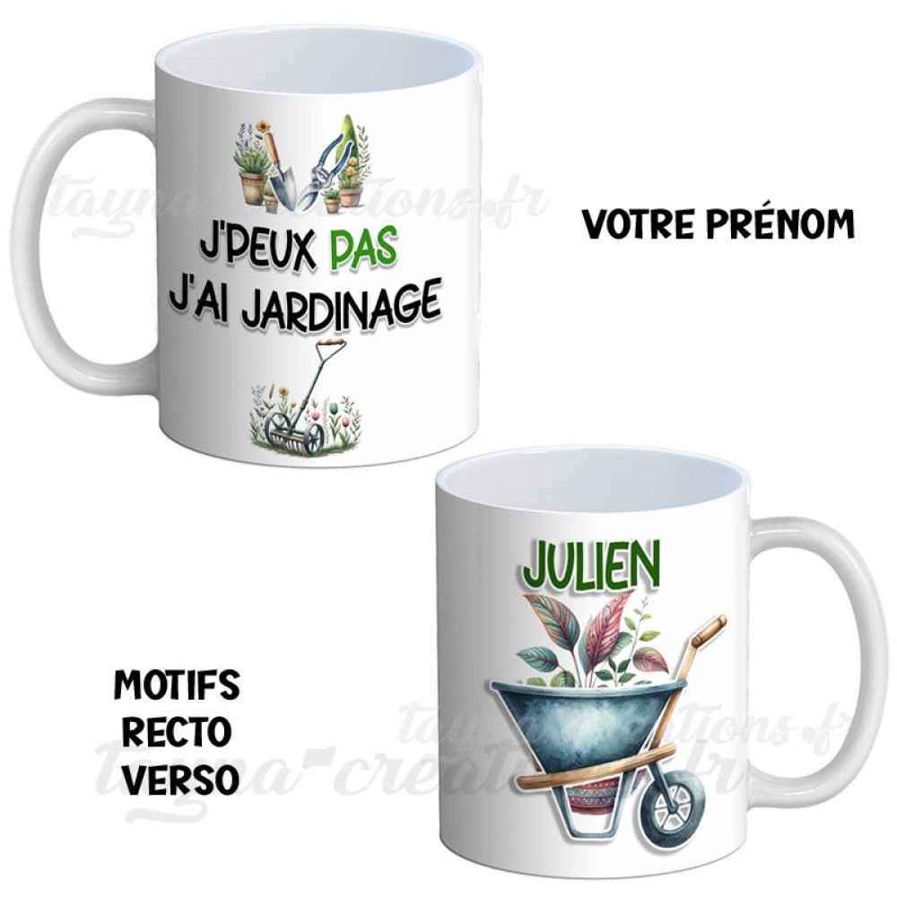 Mug J’peux pas, j’ai jardinage, Personnalisé avec votre prénom