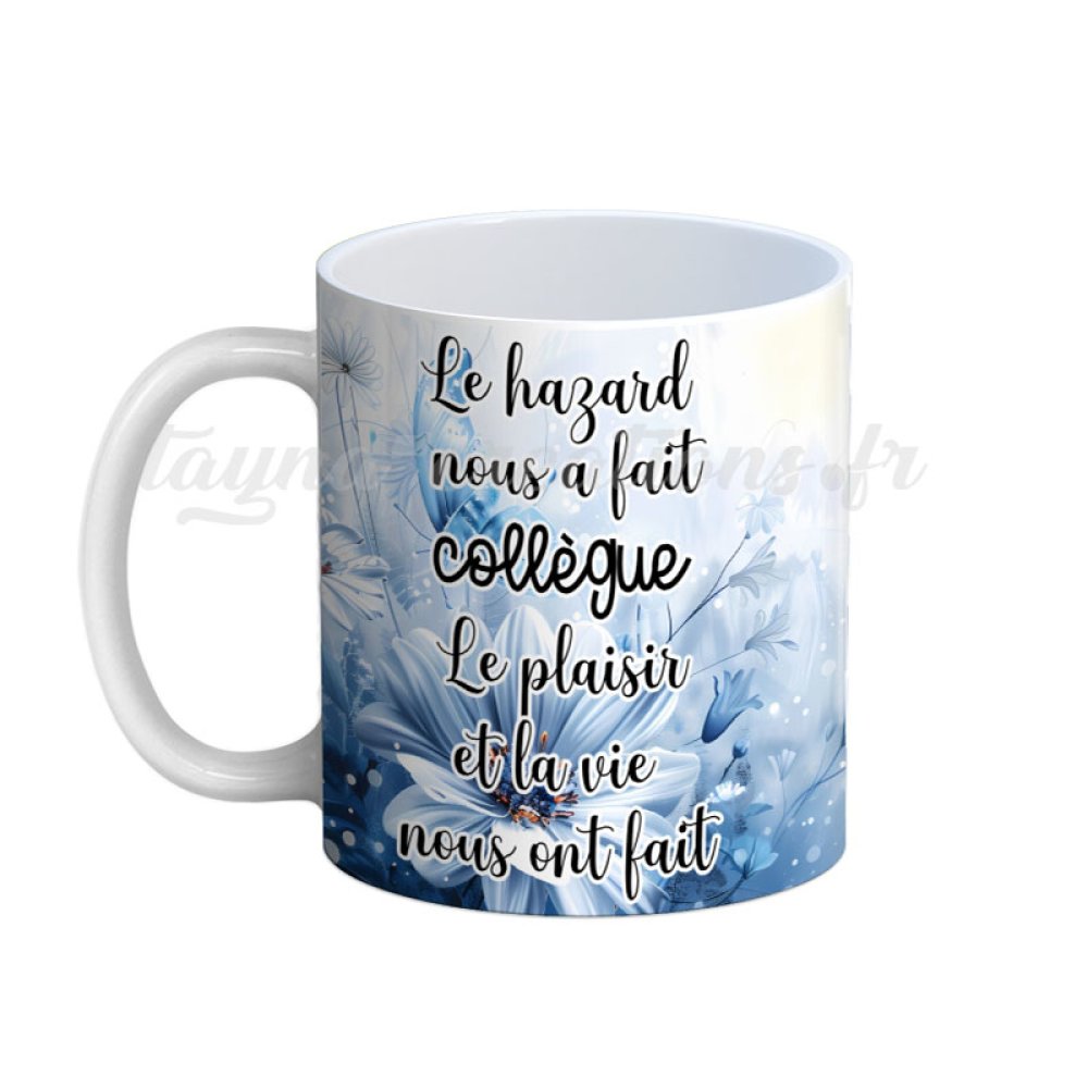 Mug le hasard nous a fait collègue, le plaisir et la vie nous on fait amies, mug personnalisable