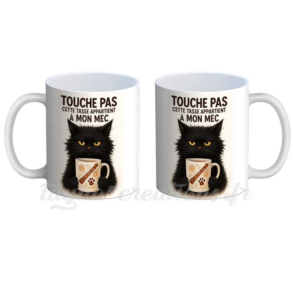 Mug touche pas cette tasse appartient à mon mec, mug recto verso chat Ajout au panier