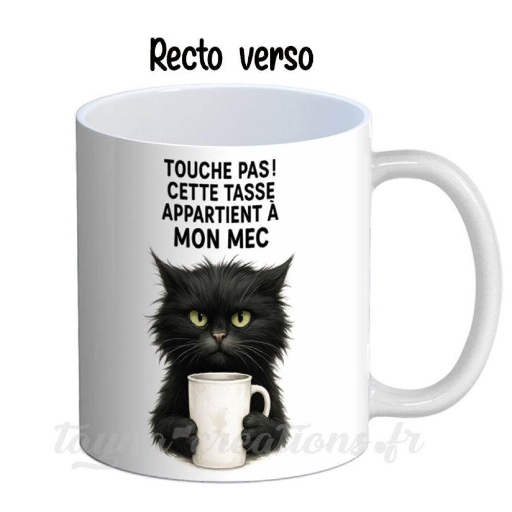 Mug touche pas cette tasse appartient à mon mec, mug recto verso chat