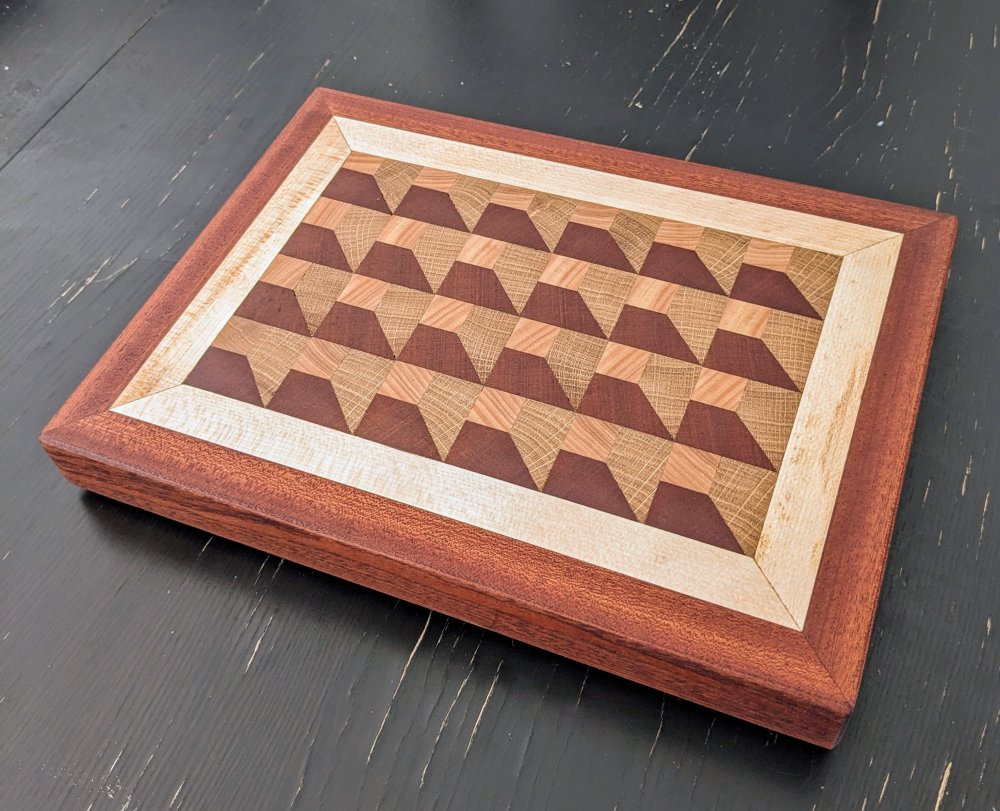 Ajoutez une touche d’élégance artisanale à votre cuisine avec cette planche en bois de bout, réalisée avec soin à partir de hêtre, d'érable, d’acajou et de chêne massifs. Son motif géométrique en cubes tridimensionnels crée un effet visuel saisissant, mettant en valeur les nuances naturelles et les grains distincts de chaque essence de bois.
