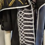 Manteau long noir et gris en Burlington, revers matelassé, dorures peintes à la main