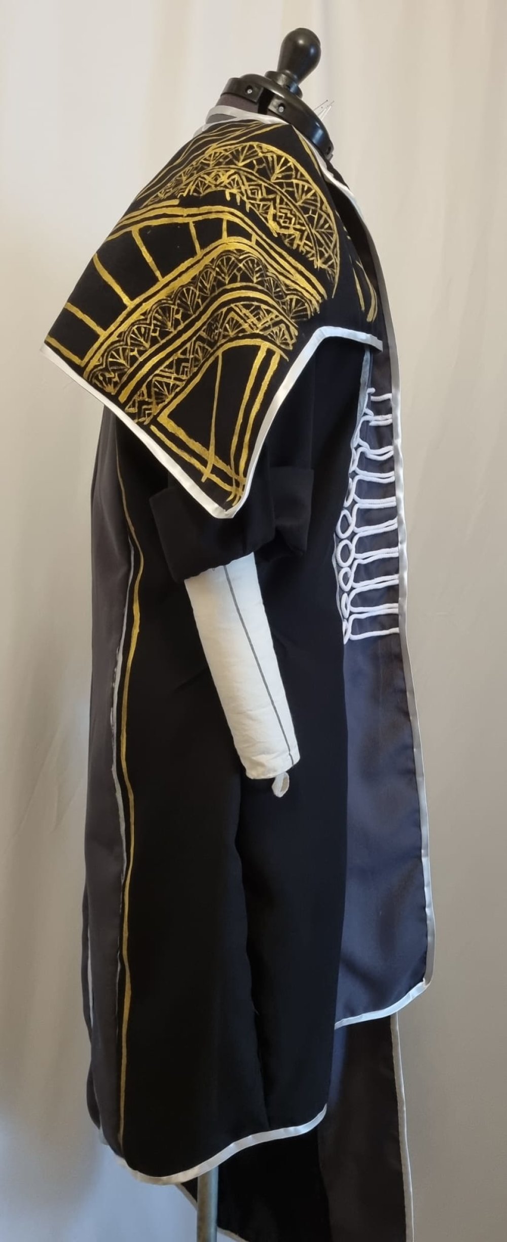Manteau-cape artisanal inspiré de Gustave (Clair Obscur – Expédition 33), fabriqué sur mesure et peint à la main dans mon atelier en France. Idéal pour cosplay, conventions et collectionneurs.