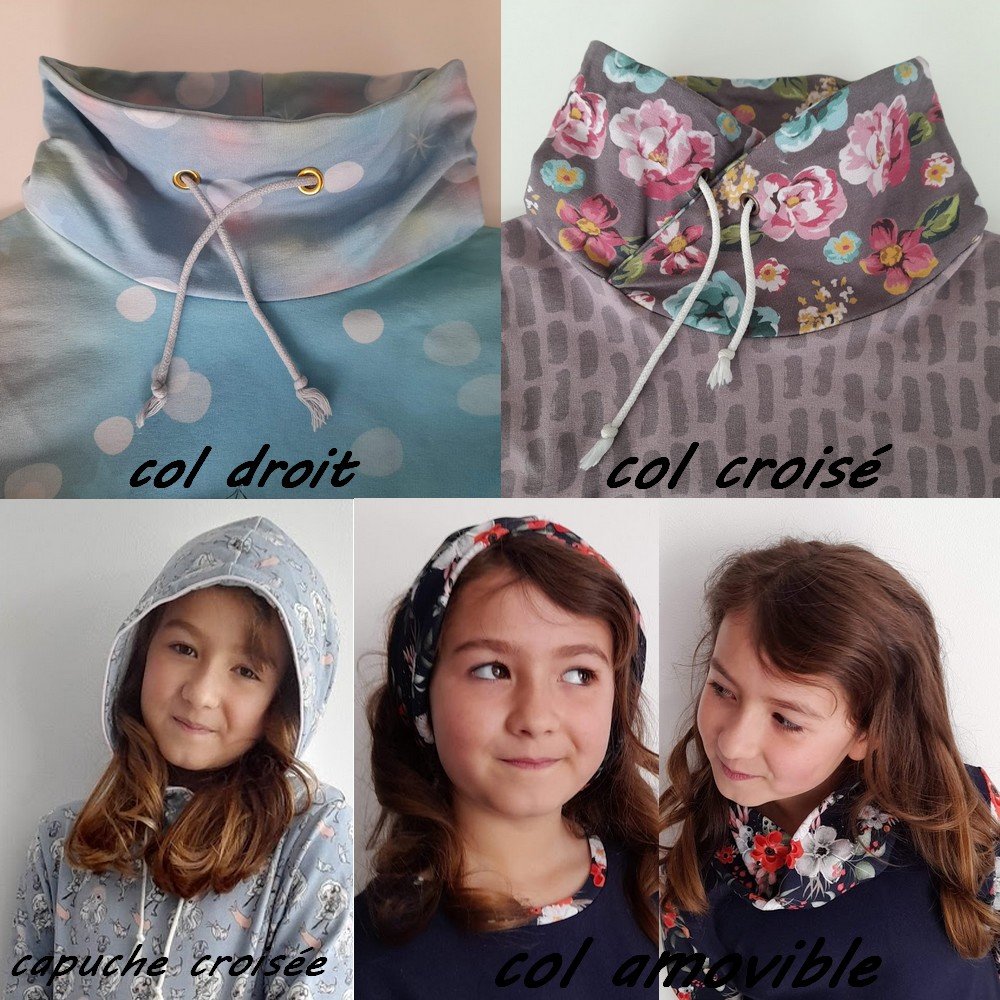 -encolure ronde avec col amovible à porter aussi en bandeau.