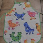 Tablier enfant tissu coton couleur écru avec biais couleur vert anis sur le pourtour.