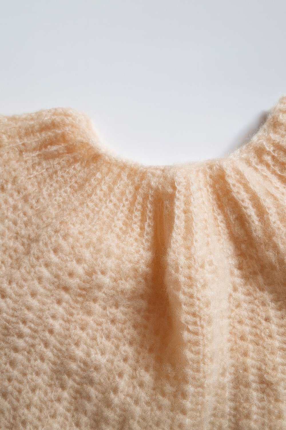 Brassière en laine crochetée – point fantaisie, couleur abricot pâle