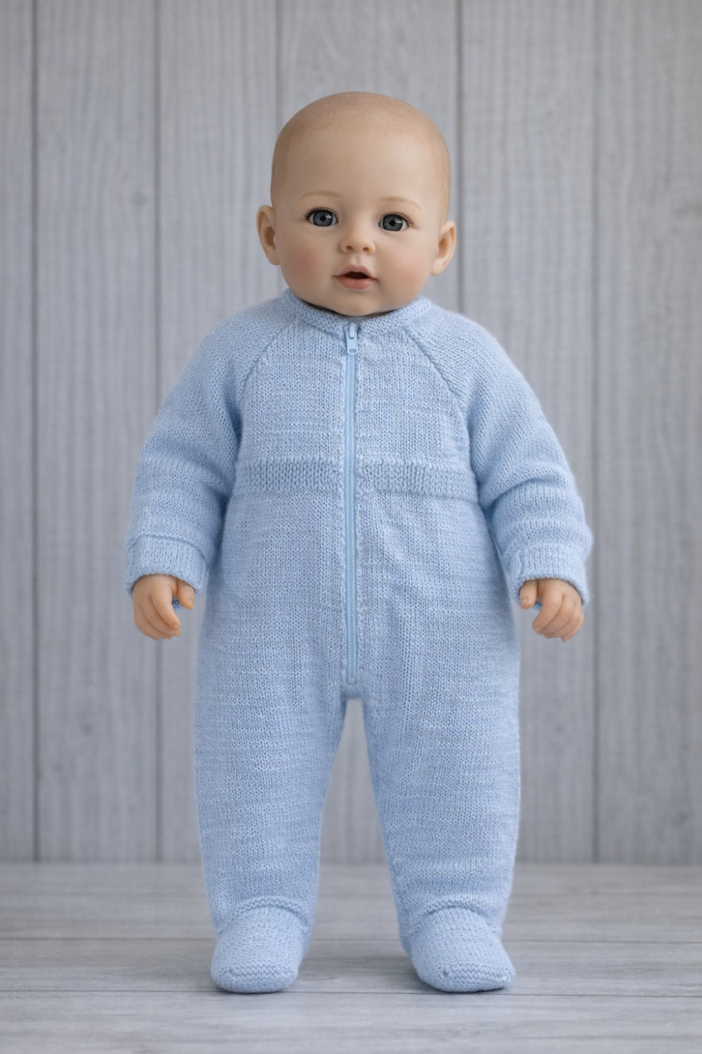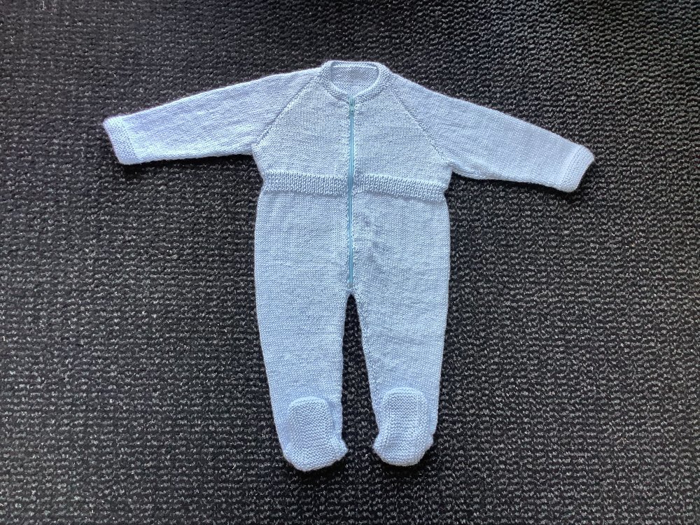Je vous présente une combinaison avec les pieds.cette fois ci en bleu pâle.