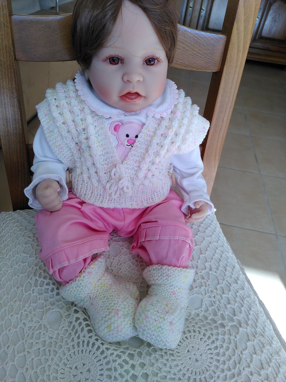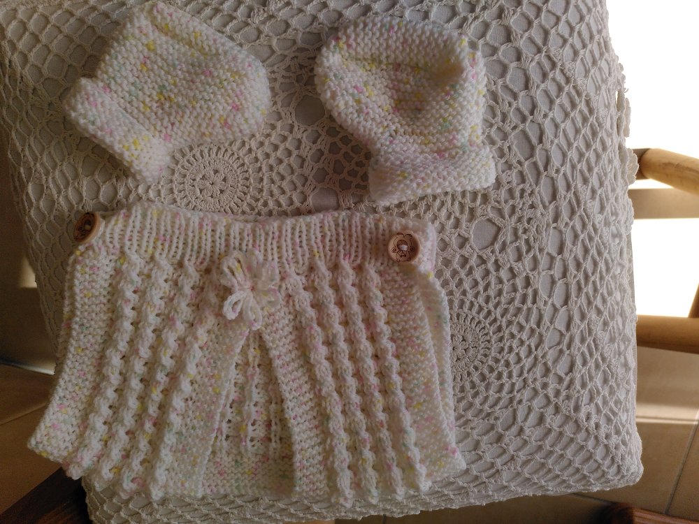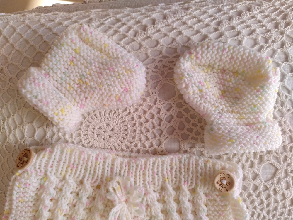 très mignon réalisé avec de la laine layette chinée au tricot fait main
