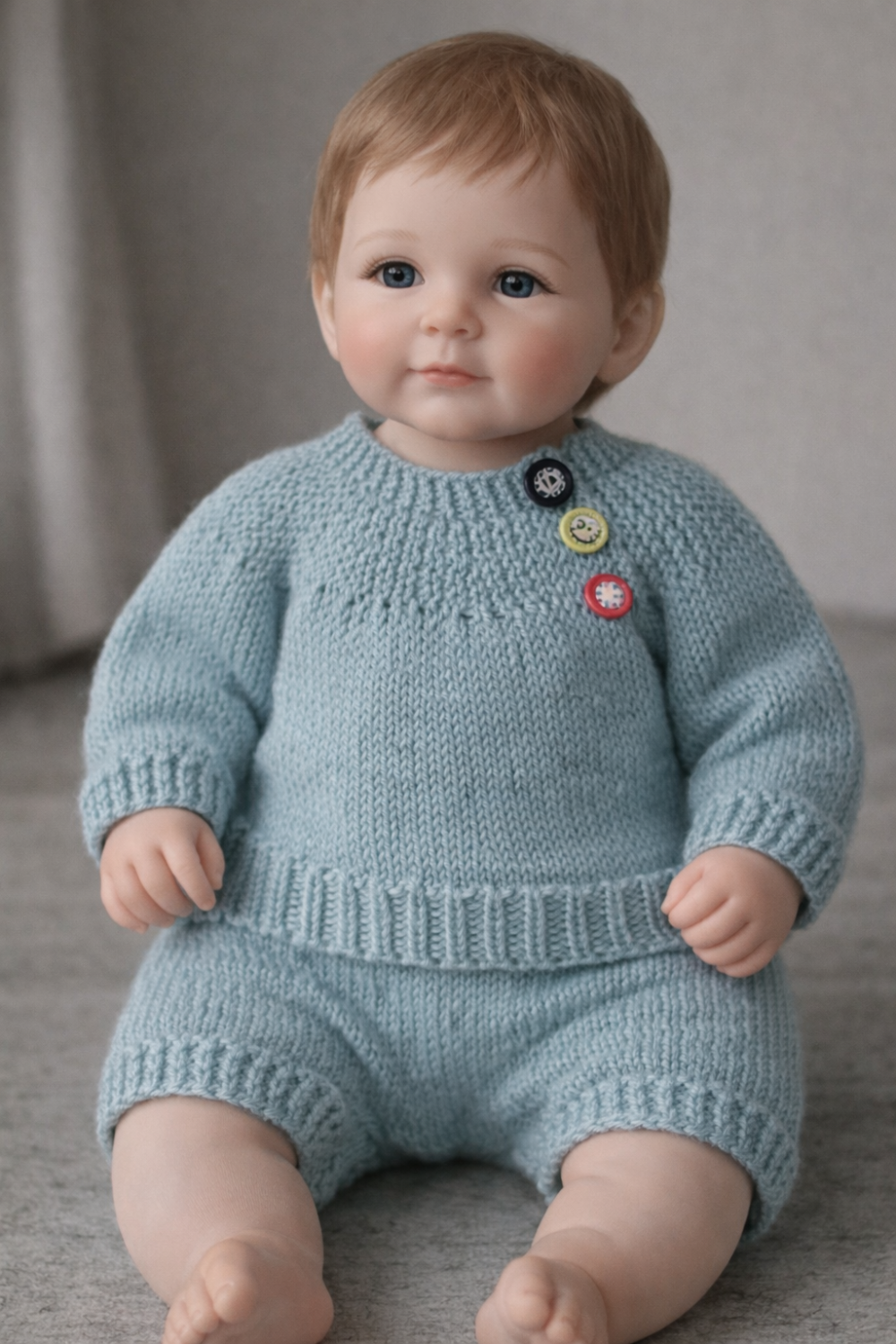 Voilà un petit ensemble d'un pull ou brassière et de sa culotte ,tricoter main en taille 3 mois.