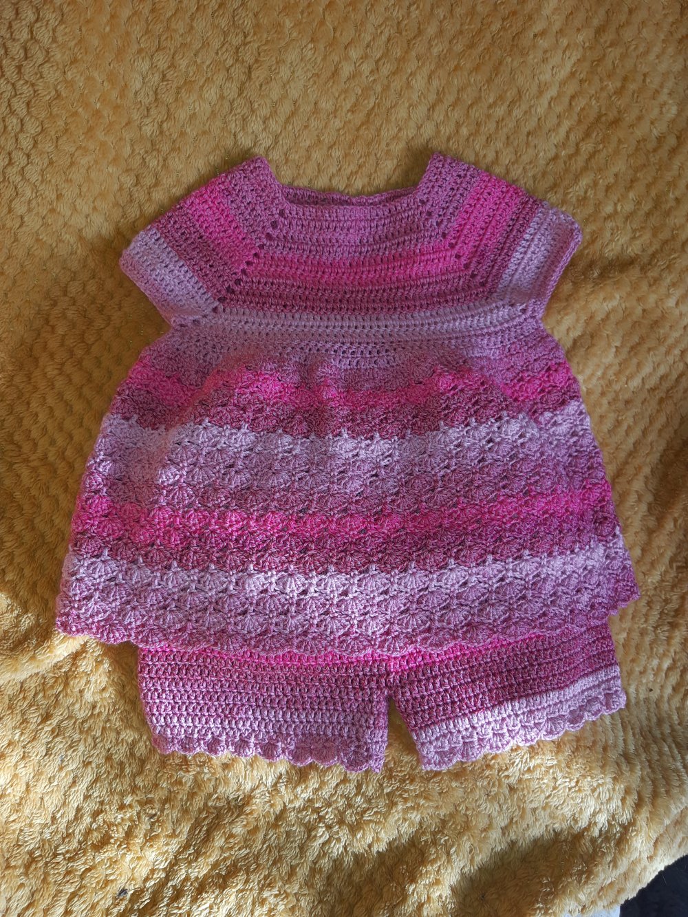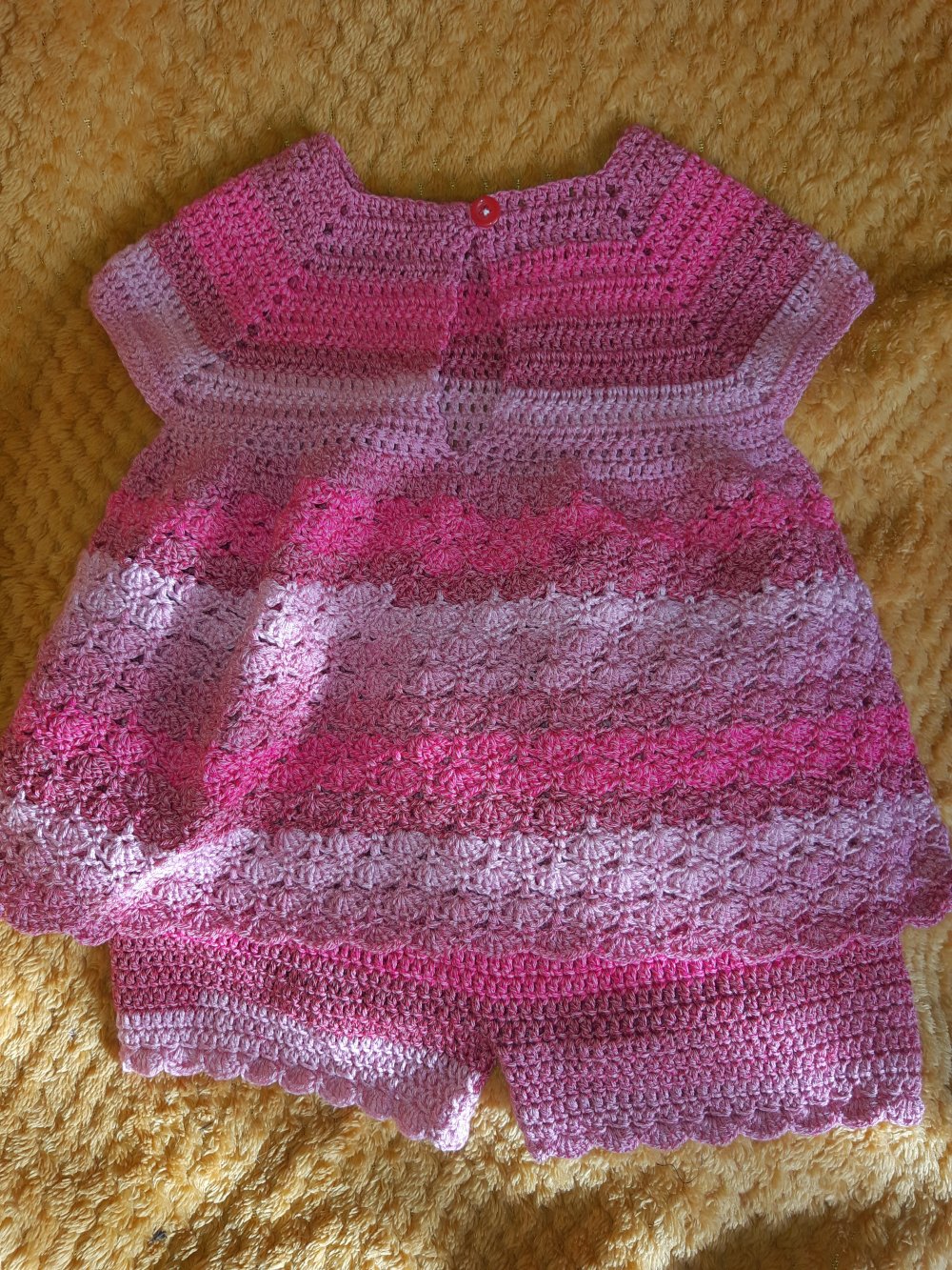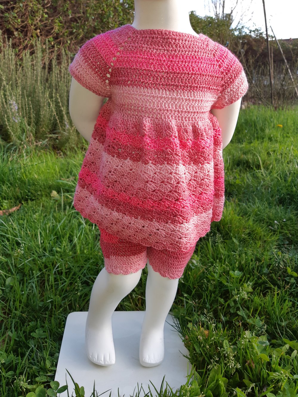 Ensemble Robe & Short Bébé de 1 ans, création fait main, Motif coquille, en fil de coton, évasée, idéal pour l'été,