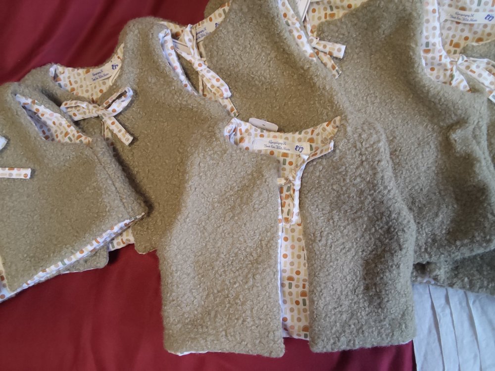 Adorable gilet de berger pour bébé/enfant confectionné en tissu bouclette tout doux, idéal pour garder votre petit bien au chaud tout en restant léger et confortable.
