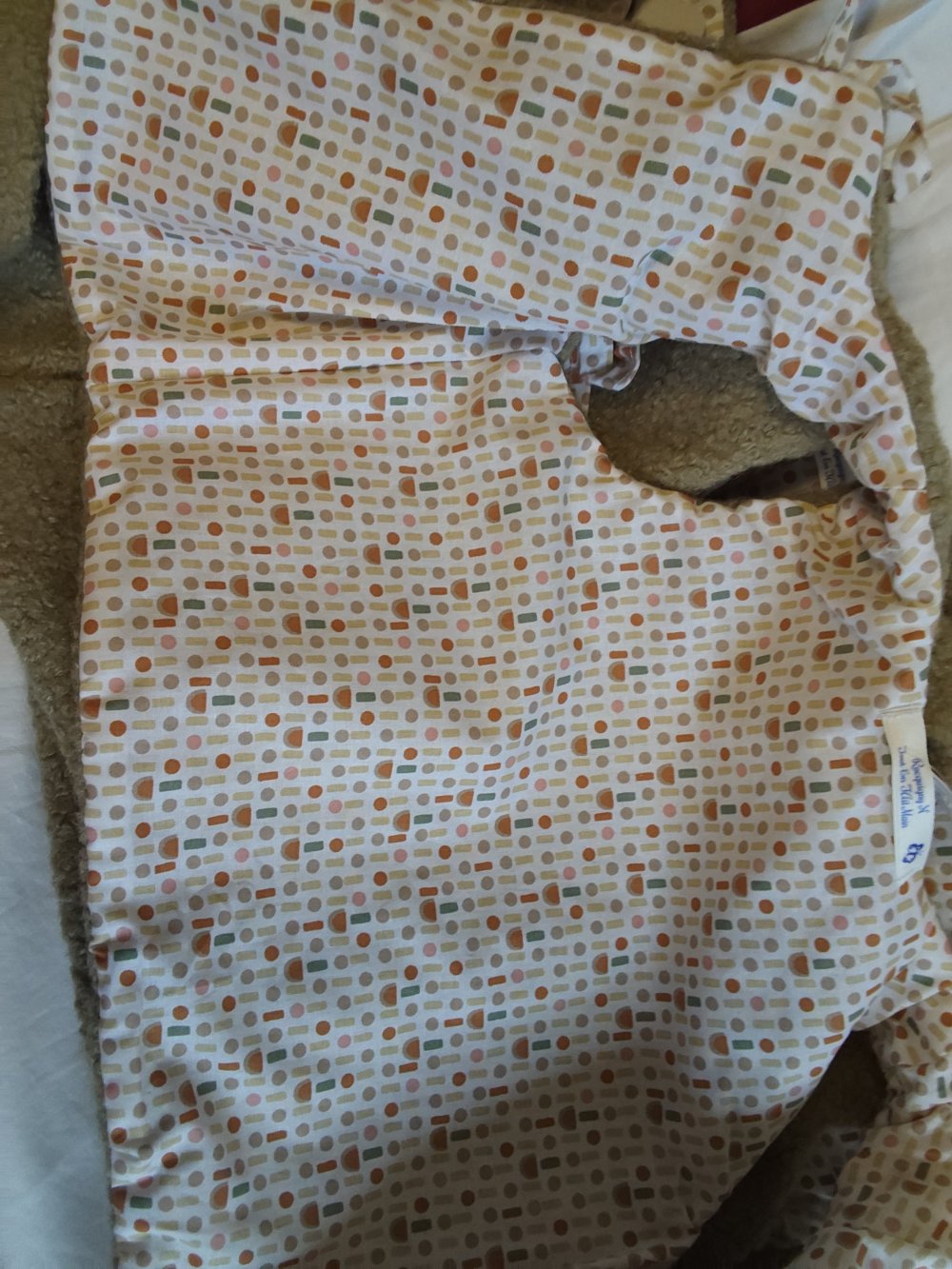 ✨ Extérieur : tissu bouclette couleur naturel/écru, effet laine de mouton, très doux au toucher.