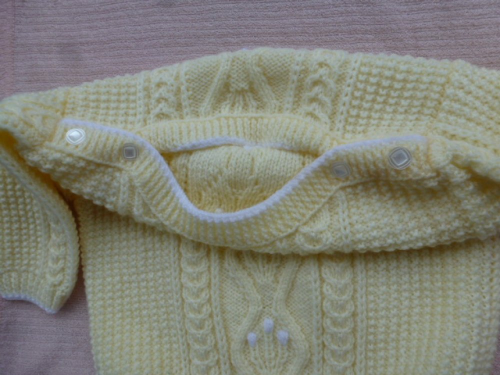 Pull bébé boutonné sur les épaules réalisé avec un points fantaisie