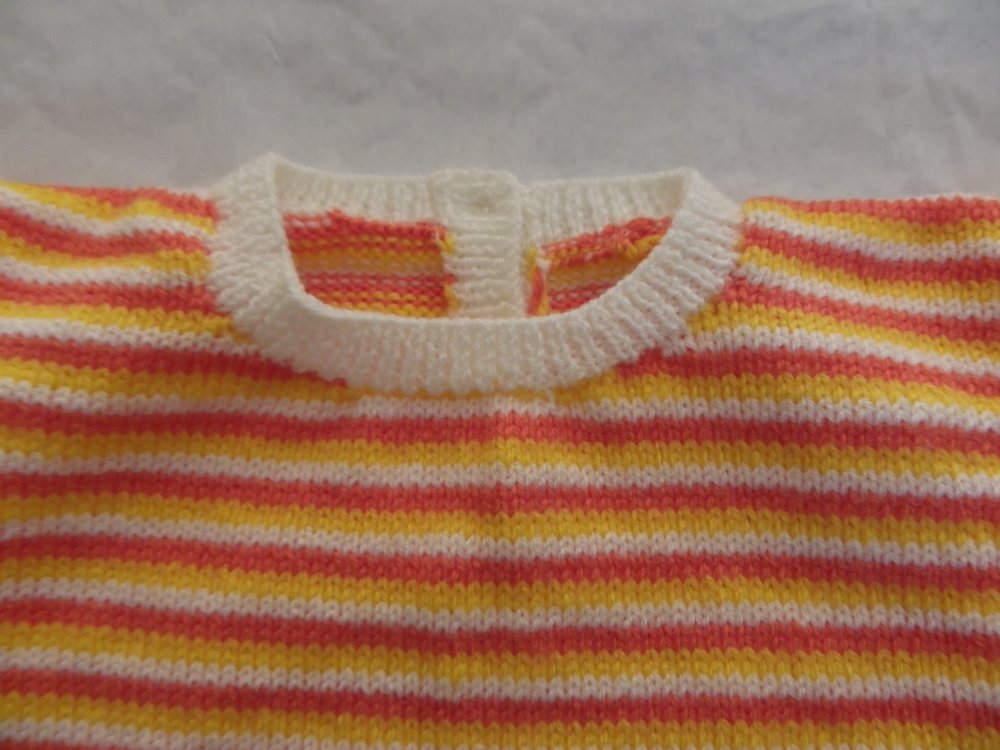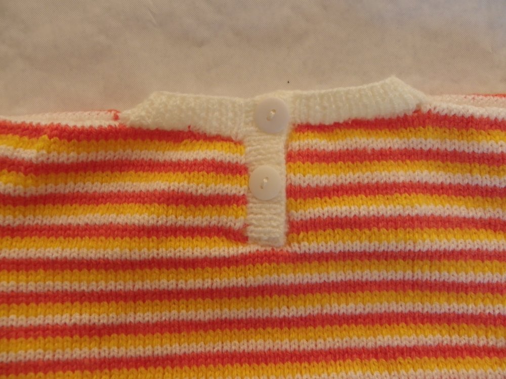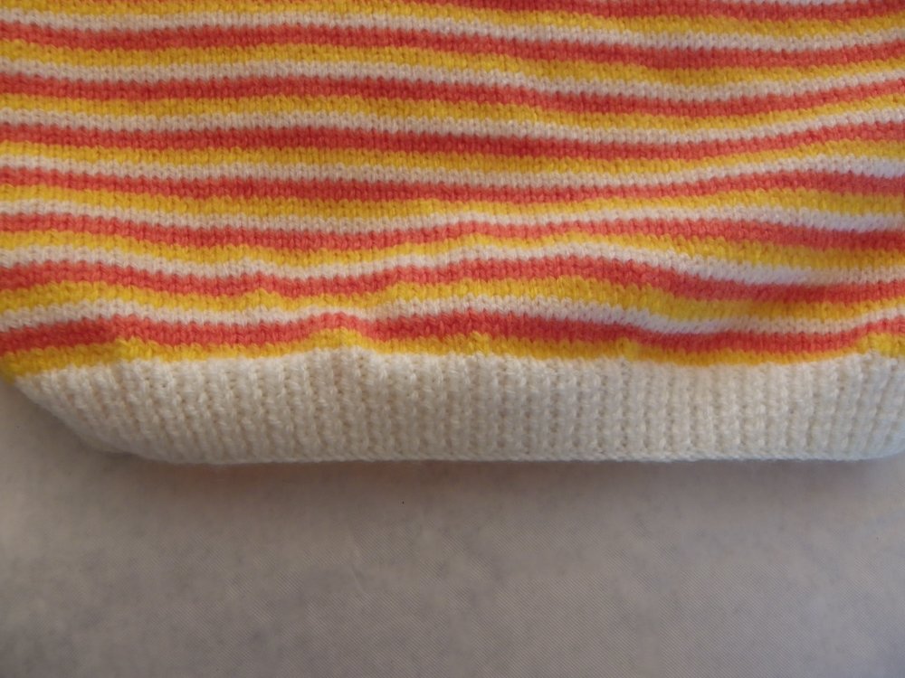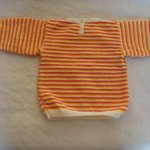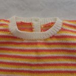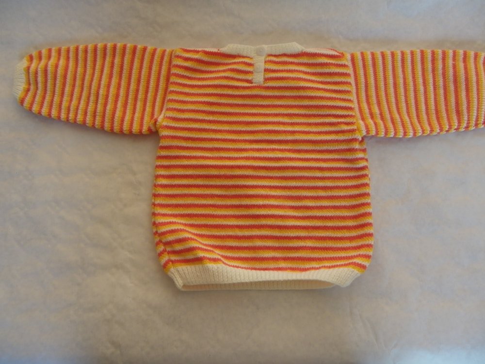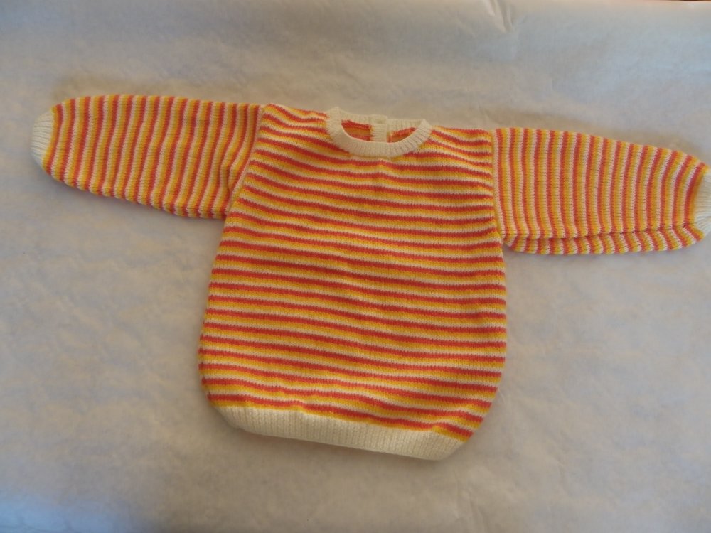 Pull rayé fait main en laine acrylique blanche , jaune et orange , bébé fille ou garçon , taille 2 ans