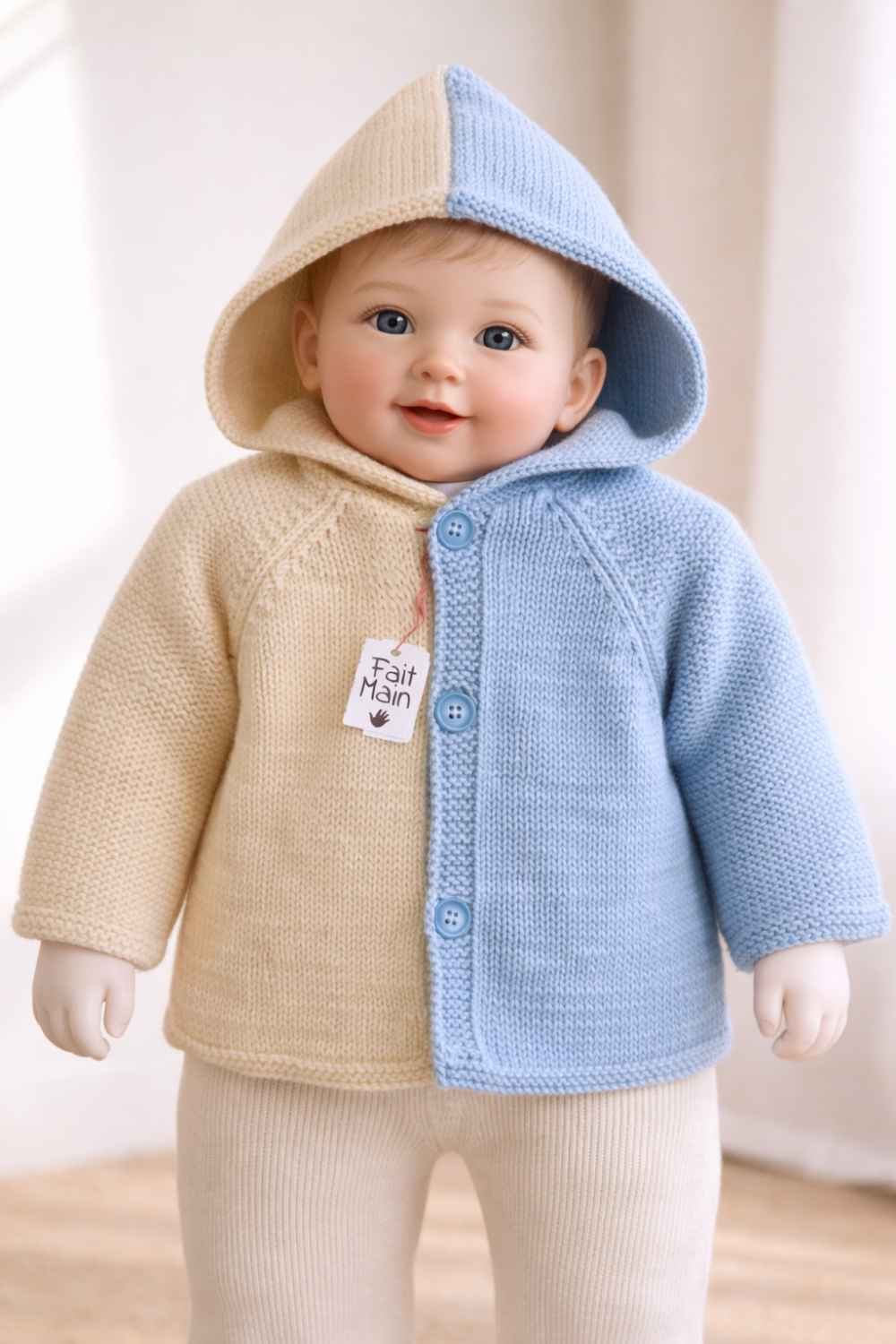 Tricoter main avec soin cette veste sera apprécier par un bébé garçon portant la taille de 18-24 mois.