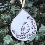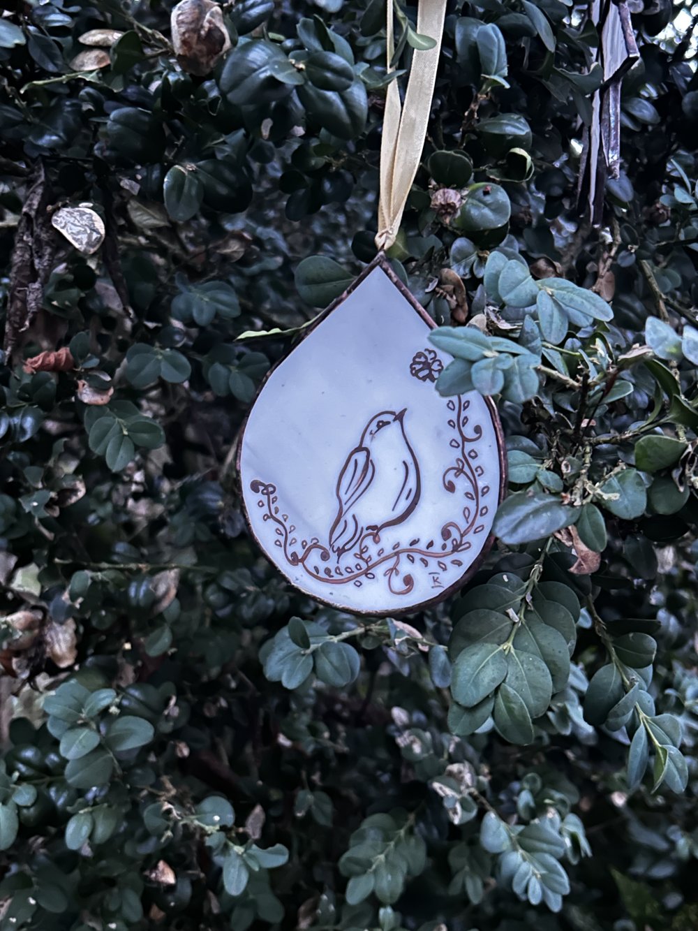 Un forme de goutte pour représenter l'instant éphémère d'un oiseau sur une branche, qui prend le temps de sentir le doux parfum d'une fleur.