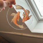 Un forme de goutte pour représenter l’instant suspendu de deux carpes koï dans leur bassin.