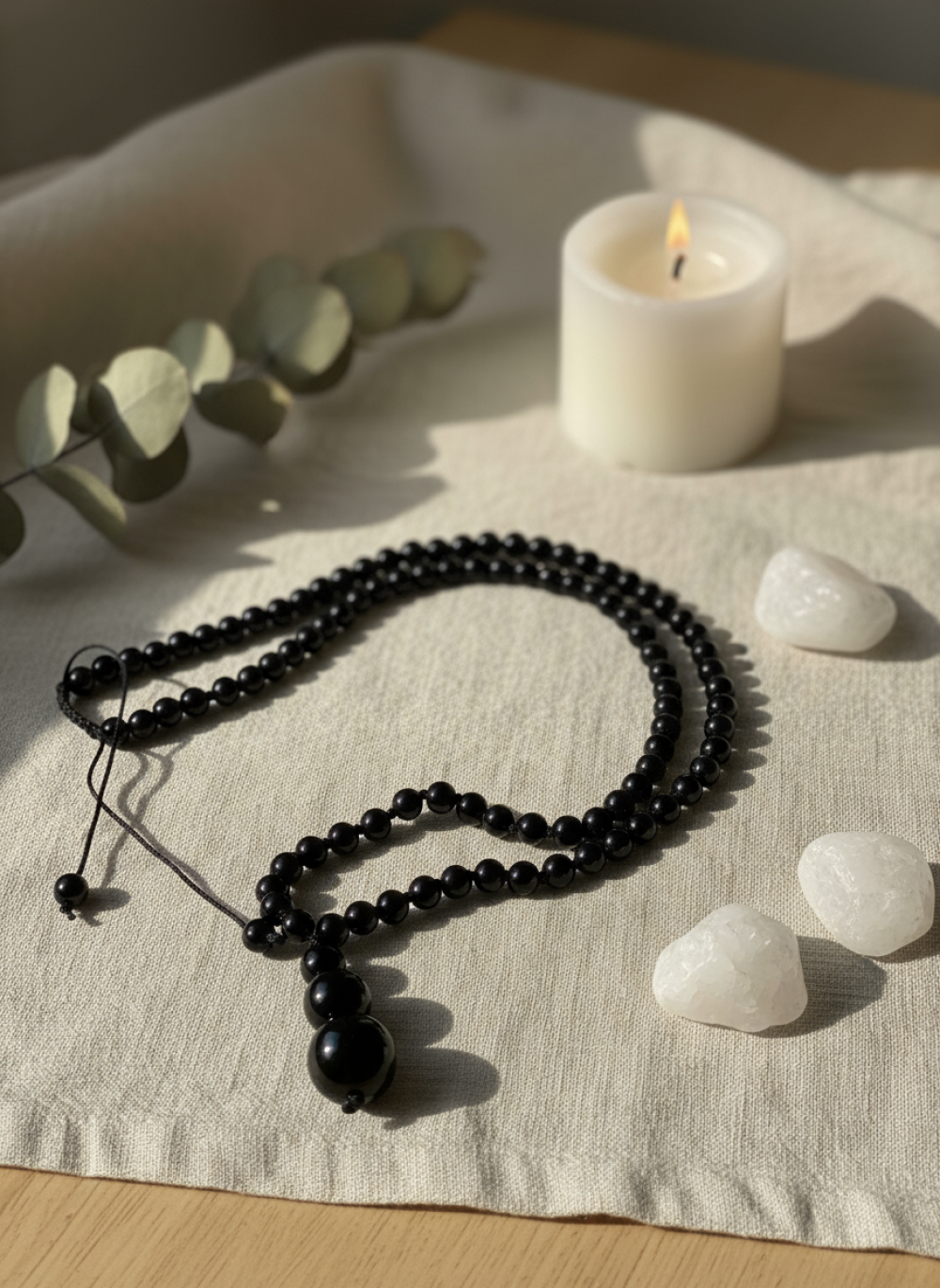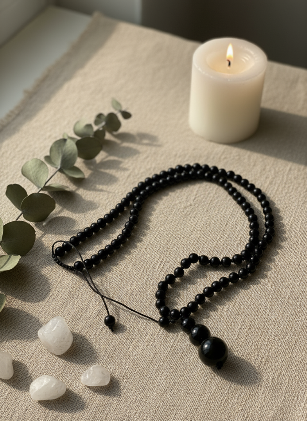 Découvrez un collier élégant et intemporel signé Atelier LikaNova : un bijou artisanal composé de perles noires brillantes, montées à la main avec une finition soignée.