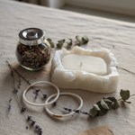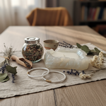 Coffret Bien-Être Artisan – Bougie Époxy, Tisane Parfumée & Bracelets Bouddhistes – Cadeau Zen & Relaxation