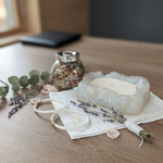 Ce coffret artisanal regroupe trois éléments essentiels du bien-être :
