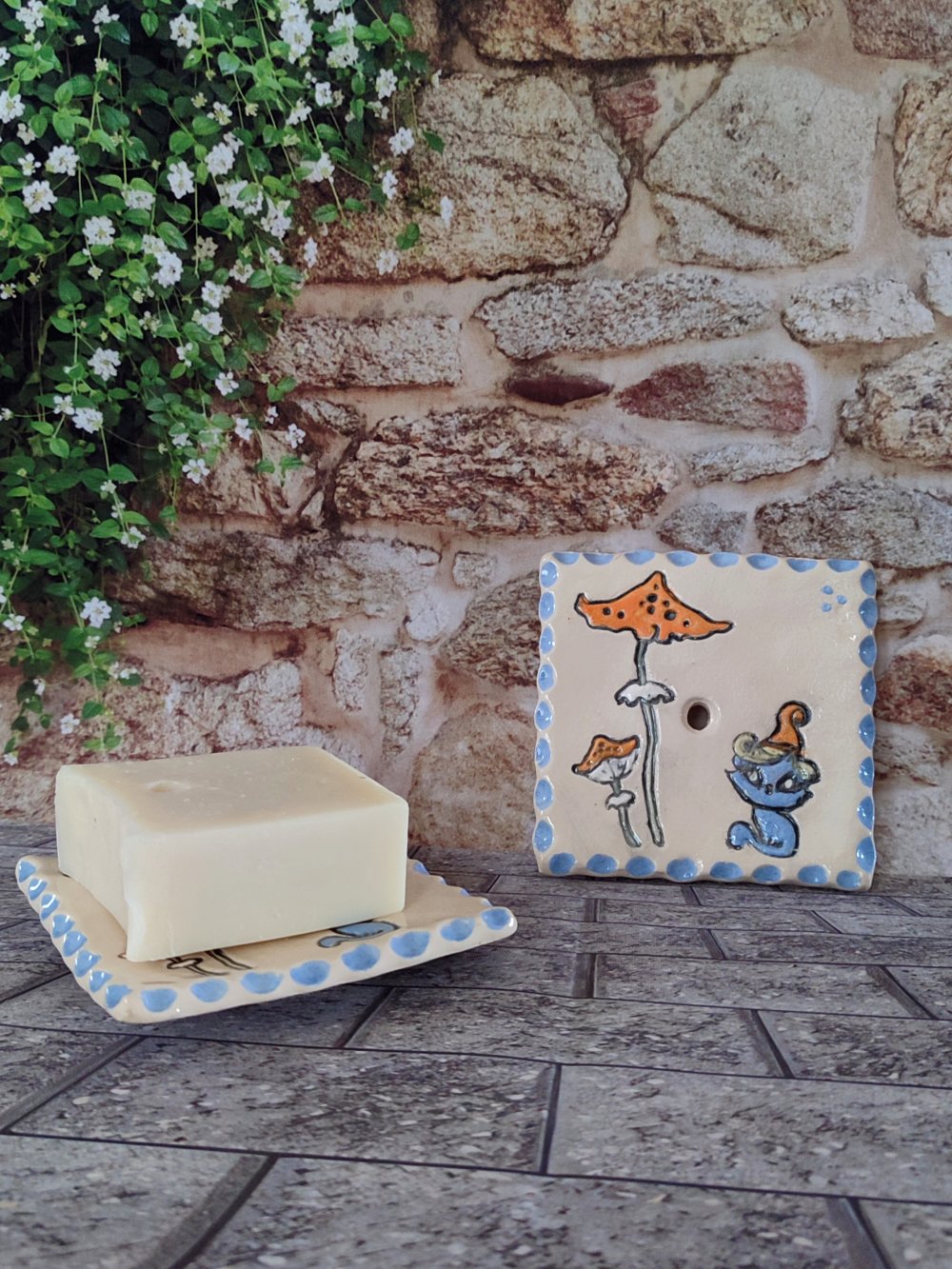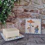 Porte-savons carré en céramique émaillés fabriquée à la main, style féerique.