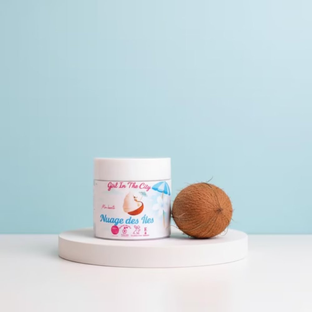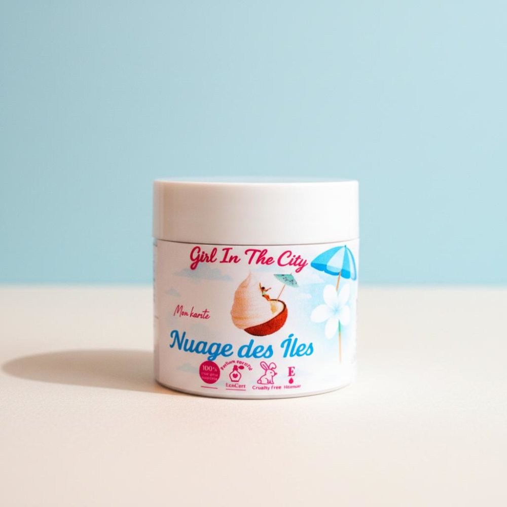 Un beurre corporel fouetté inspiré des voyages, léger comme une mousse végétale, façonné à la main en France à partir de karité brut non raffiné, d’huile de coco vierge et de vitamine E naturelle.