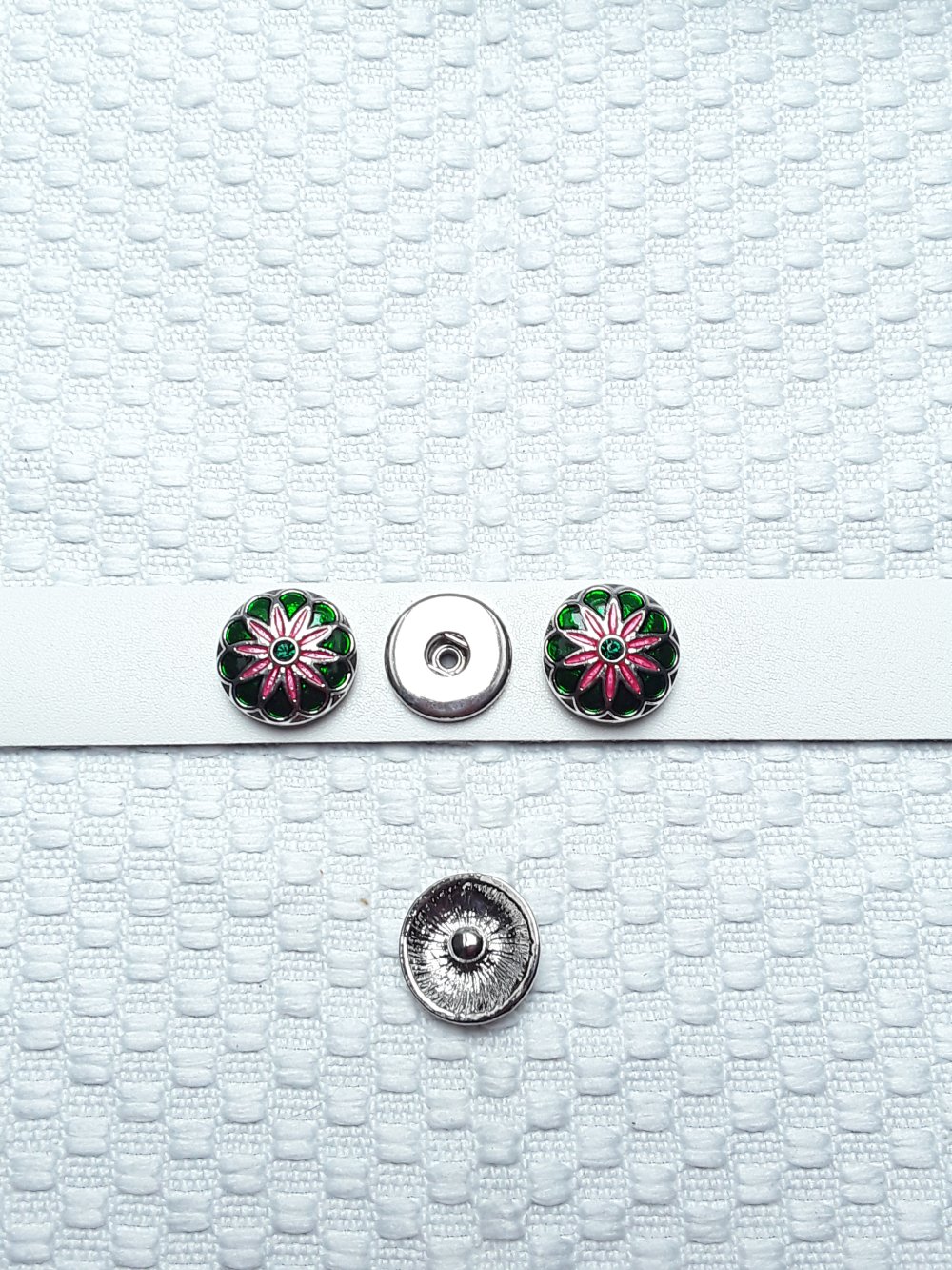 1 Bouton pression bijou 20mm fleur émail argent tibétain