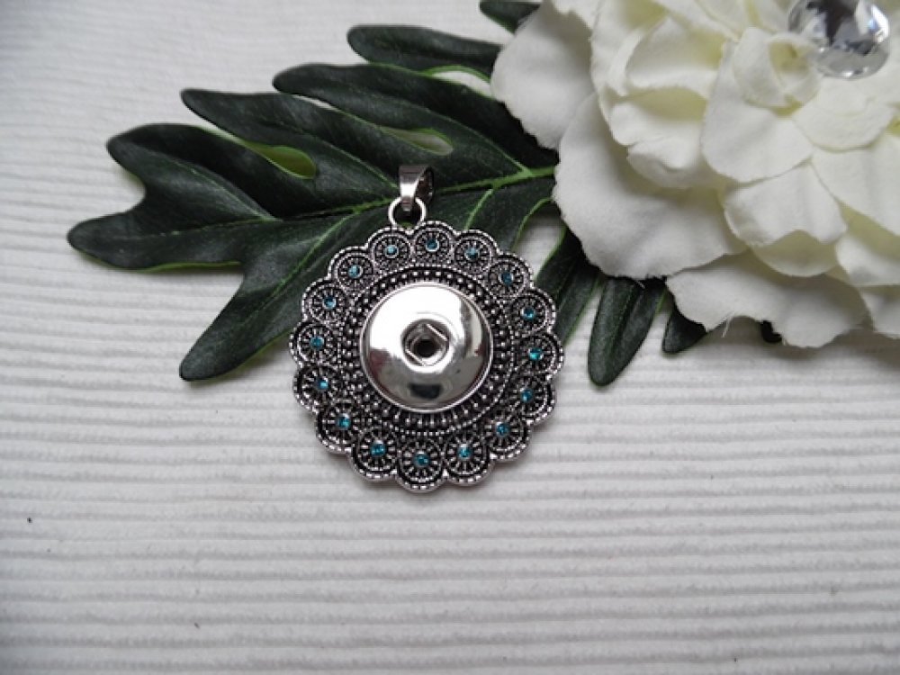 1 Bouton pression bijou 20mm fleur émail argent tibétain pour bracelet,pendentif et bague trou du bouton pression de 5.3mm