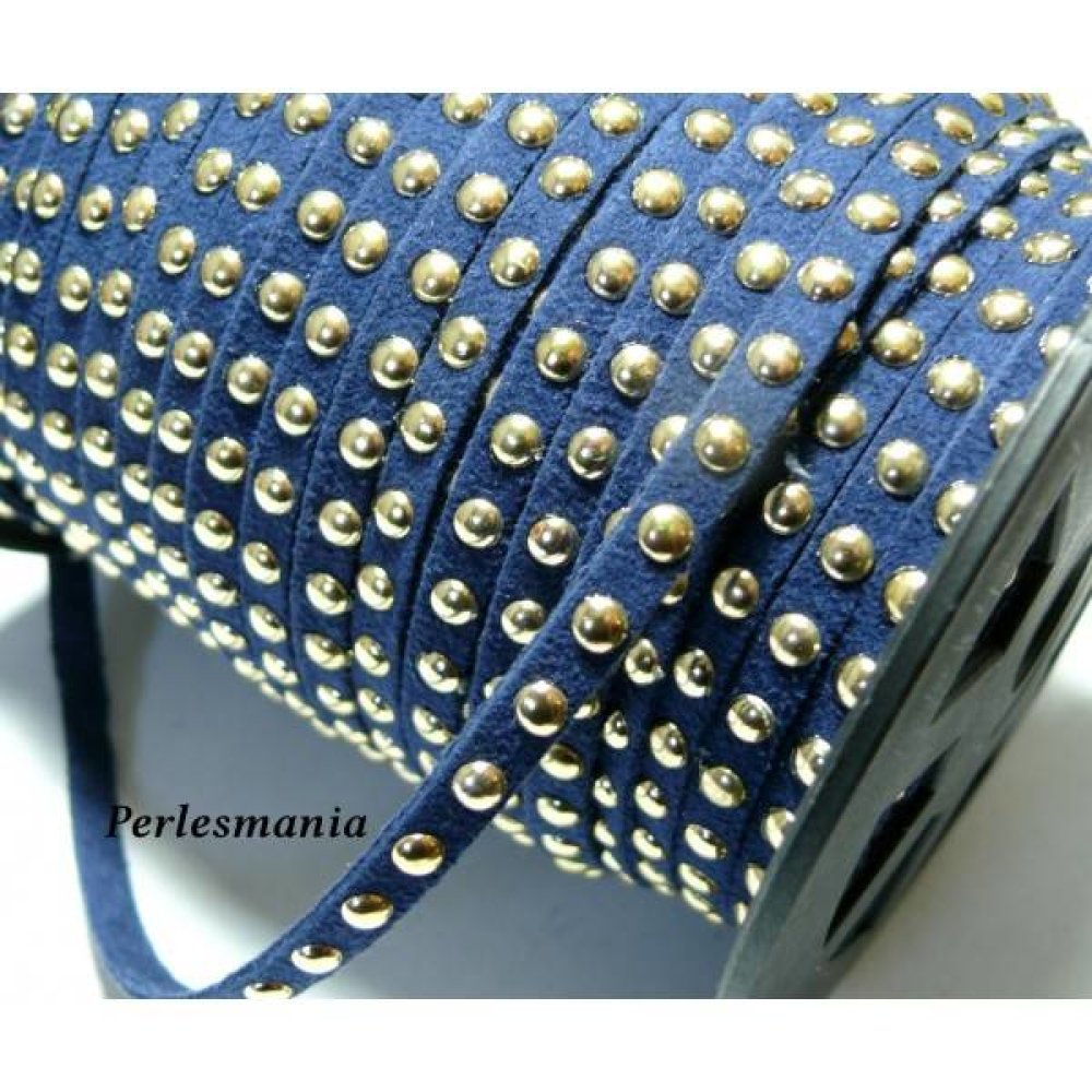1 mètre de cordon de suédine cloutée doré aspect Daim BLEU MARINE PR00204 ( plus foncé que sur la photo ) Vous pouvez associés ces cordons entre eux, ou avec des biais, ou cordon suédine pour de magnifique créations de bracelet. Taille: 6mm x 2