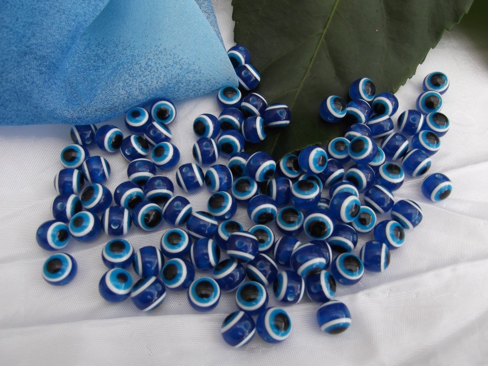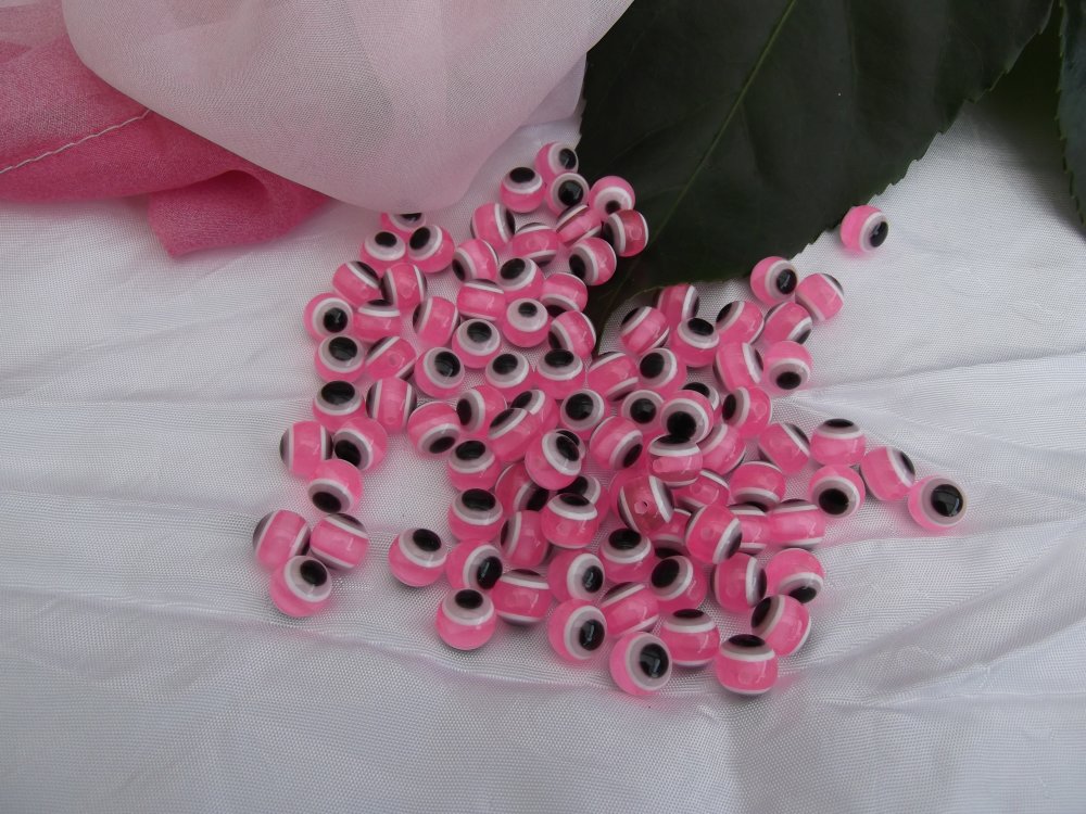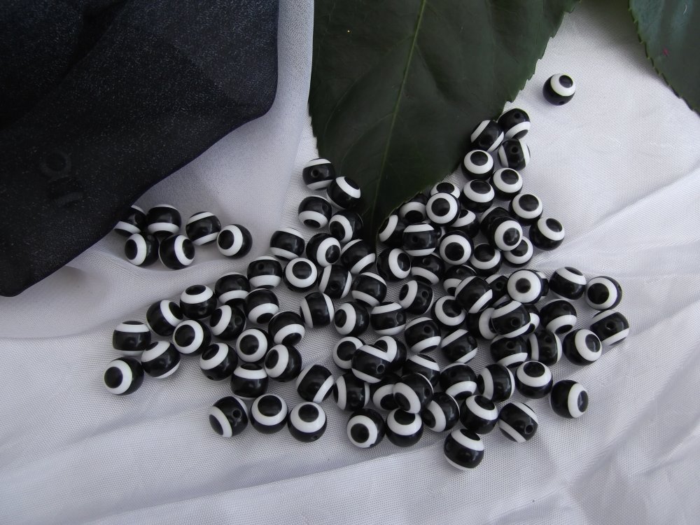 Lot de 10 perles ronde oeil noire blanc 9.5x9.2mm résine trou de 1mm.
