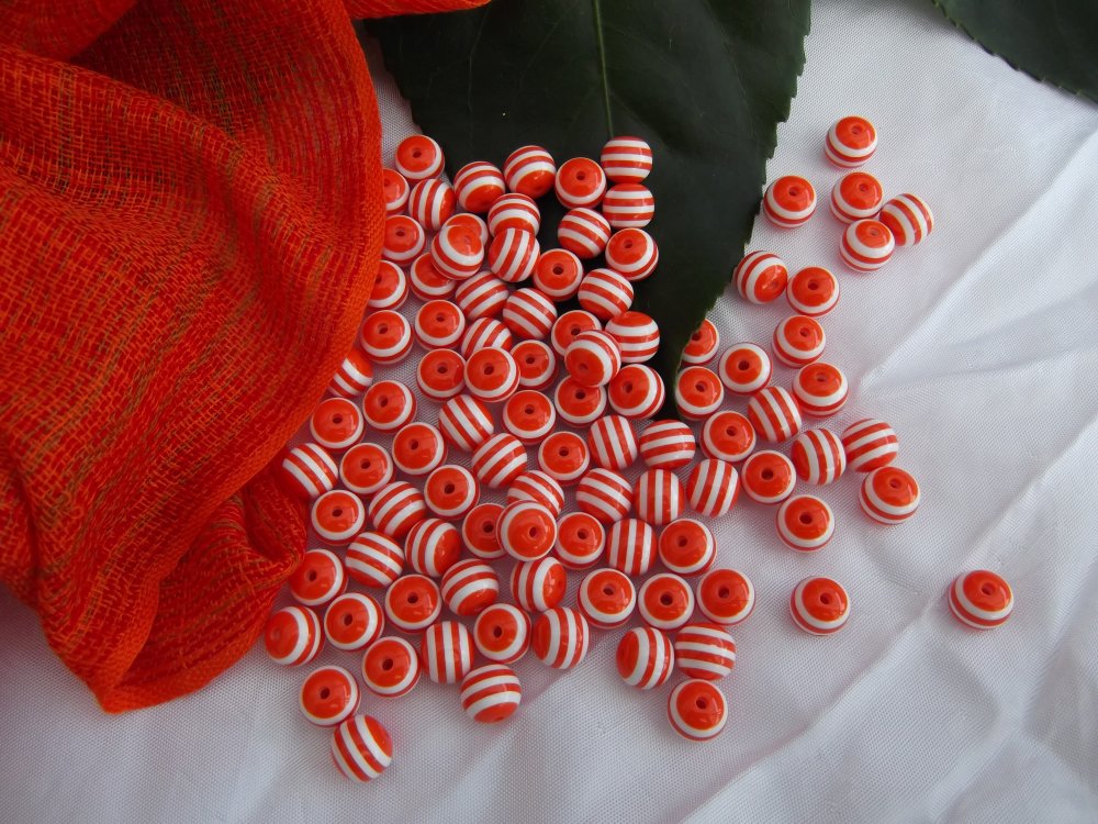 Lot de 10 perles zébrée orange blanche 10x8.6mm résine trou de 1mm.