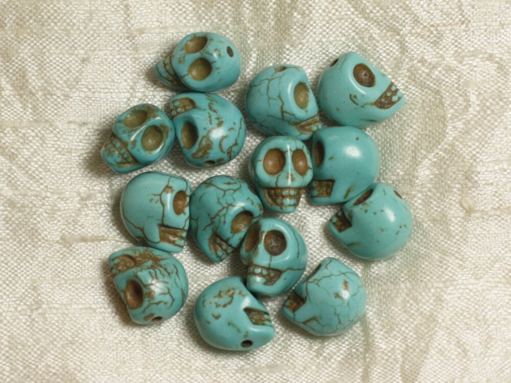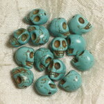 10pc - Perles Pierre Turquoise Synthese Crane Tete de Mort 14mm Bleu Turquoise - 4558550036360