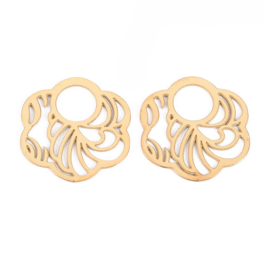 2 pendentifs rond filigrane 18 mm acier inoxydable 304 pendentif en acier doré pendentif fleur doré