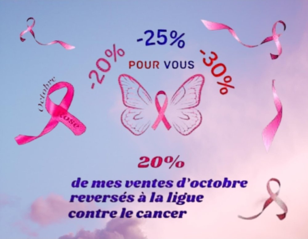 20% de mes ventes d'octobre reversés à une association de lutte contre le cancer